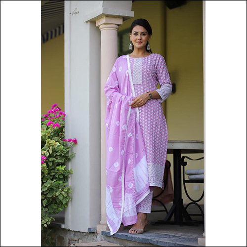 हवा पार होने योग्य चिकन एम्ब्रॉयडरी लैवेंडर सूट