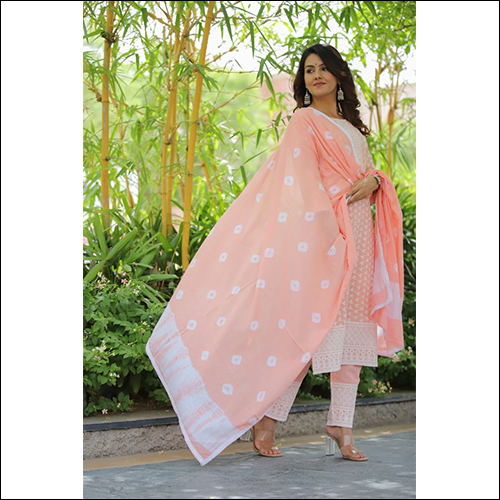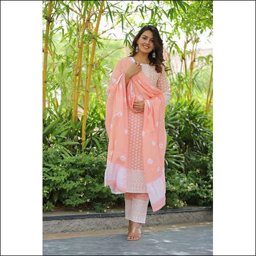नो फेड चिकन एम्ब्रॉयडरी पीच सूट