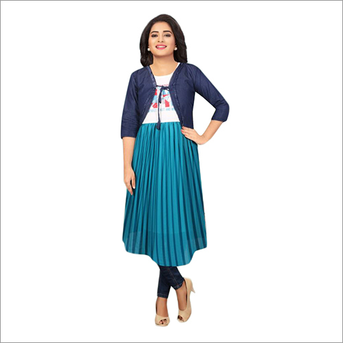 Explore in english - Chiffon Georgette Platting With Denim Jacket
