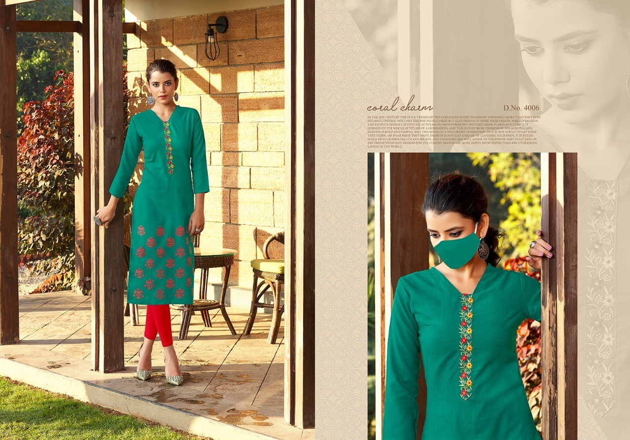 Explore in english - Chingari Vol-4 Designer Cotton Long Kurtis