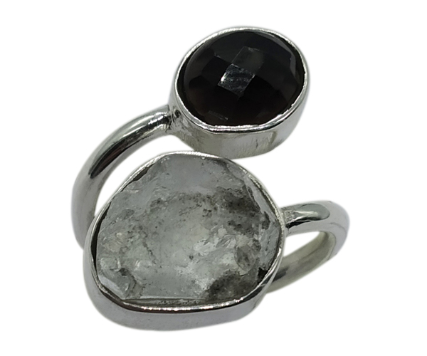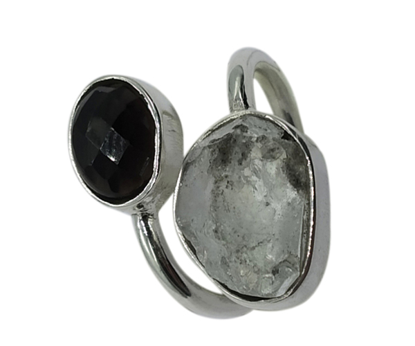 व्हाइट चिंतामणि और पेटलाइट स्टोन 925 सिल्वर रिंग