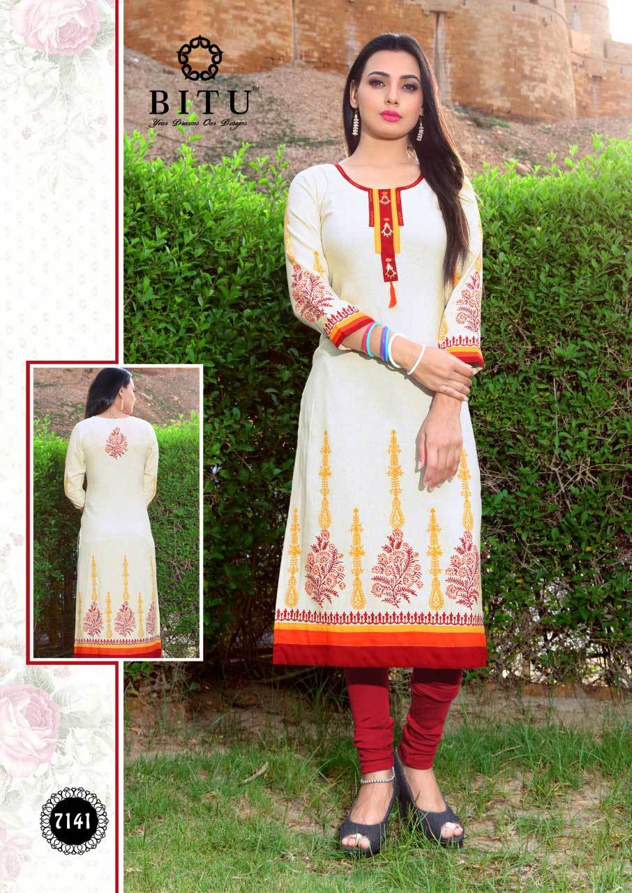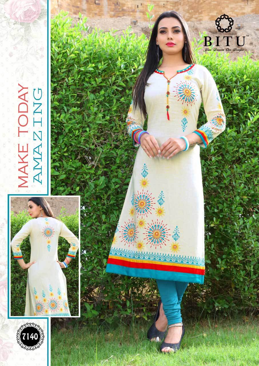 स्प्रिंग चोगडा बिटू प्रेजेंट कॉटन फ्लेक्स प्रिंटेड स्ट्रेट कुर्तियां