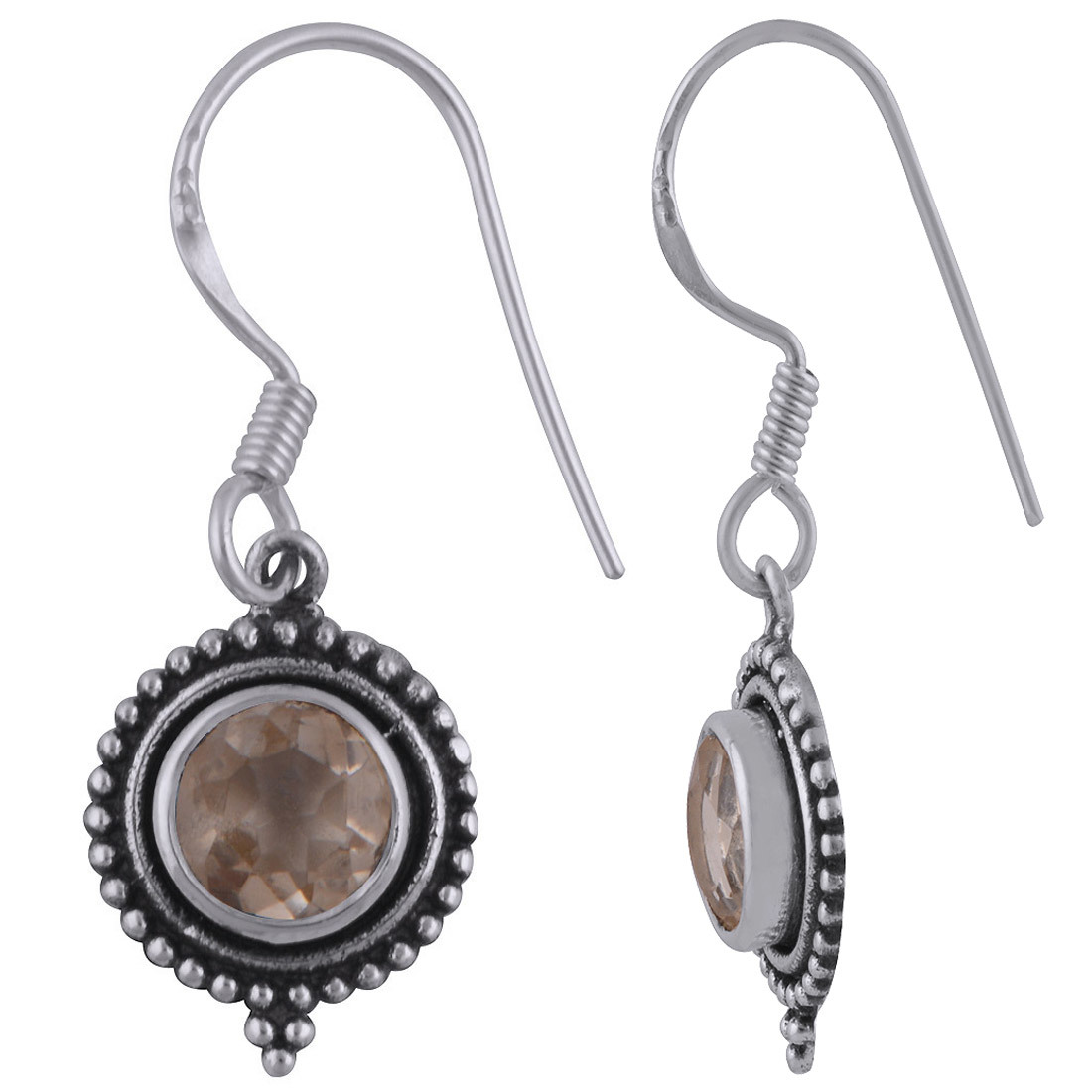 सिट्रीन नेचुरल जेमस्टोन 925 स्टर्लिंग सॉलिड सिल्वर राउंड कट स्टोन हैंडमेड इयररिंग्स लिंग: महिलाएं