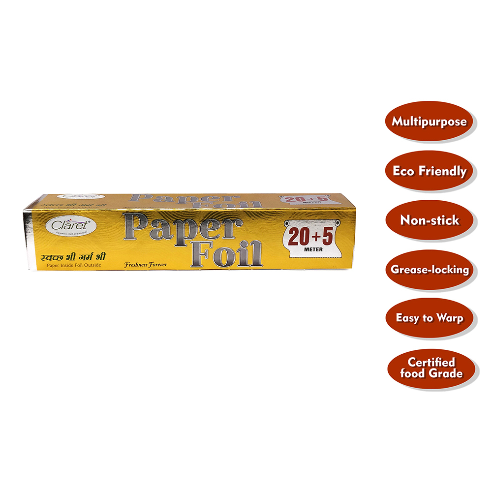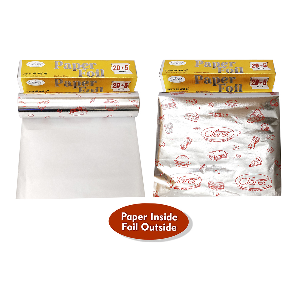 सिल्वर क्लैरेट 20+5 मीटर किचन फ़ॉइल पेपर (2 का पैक)