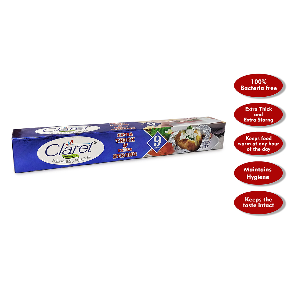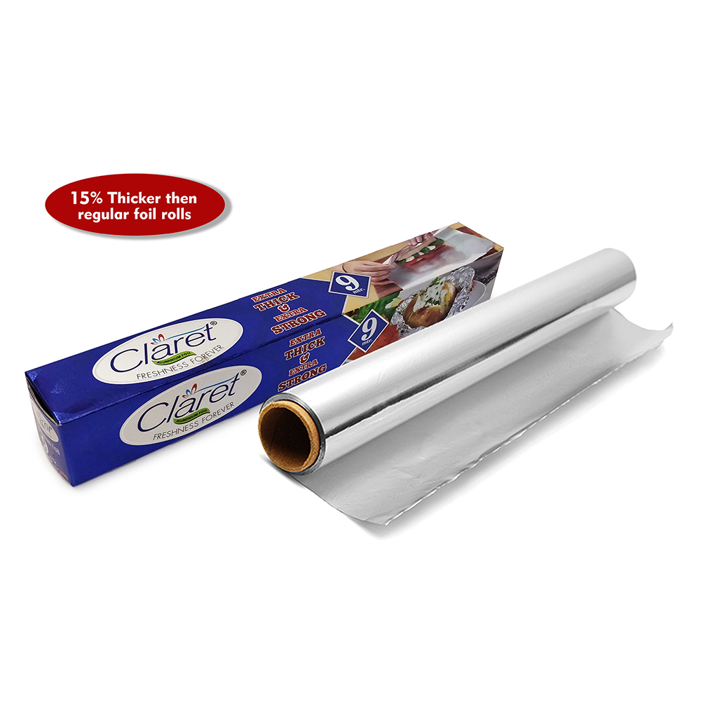 सिल्वर क्लैरेट 9 मीटर फूड ग्रेड एल्युमिनियम फॉयल रोल (4 का पैक)