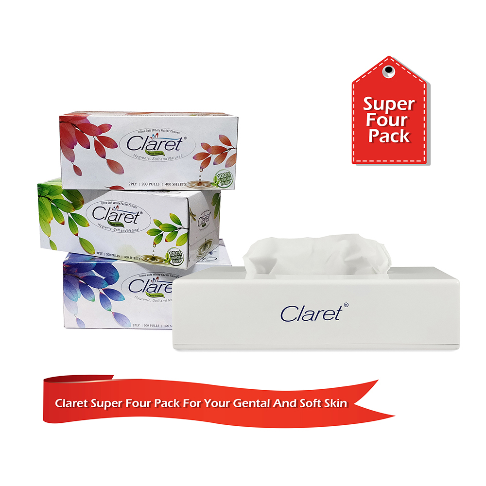 Explore in english - Claret Super 4 Pack 3 In 1 Facial Tissue Box With Big Facial Tissue Dispenser