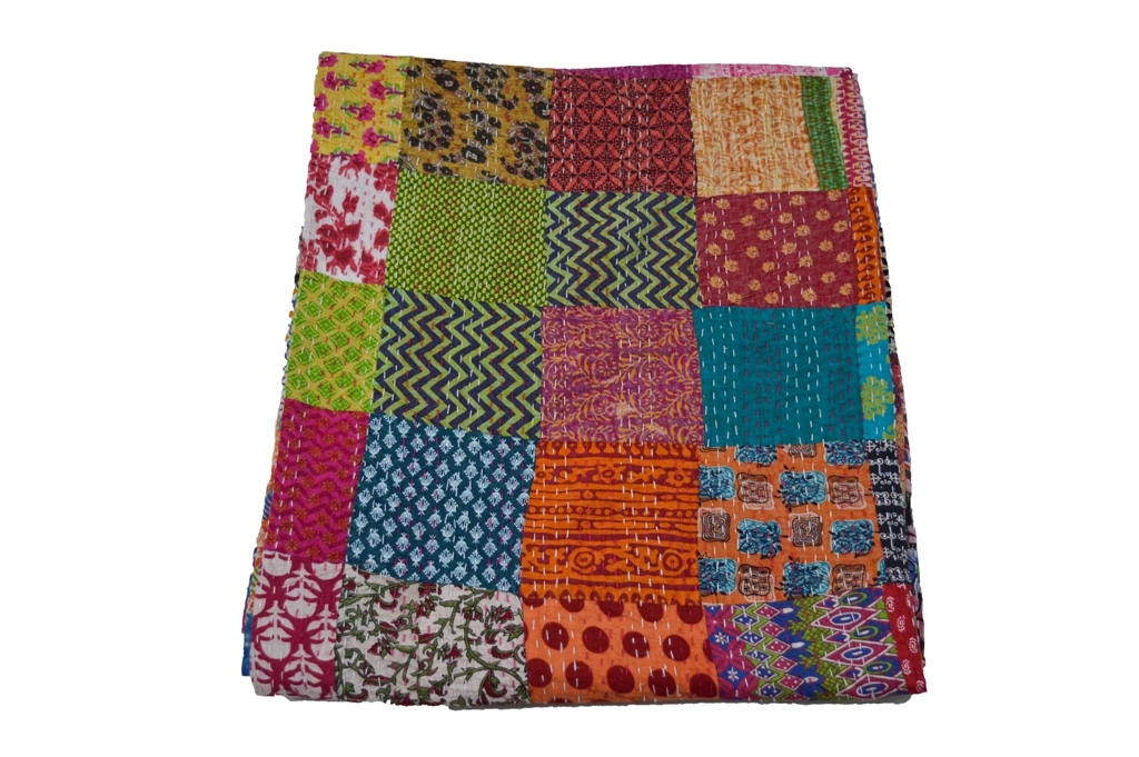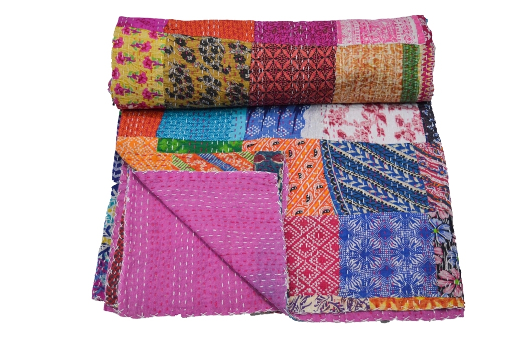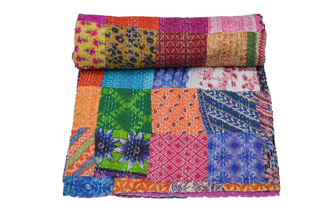 क्लासिकल फ्लोरल पैचवर्क एम्ब्रायडरी वर्क कांथा क्विल्ट