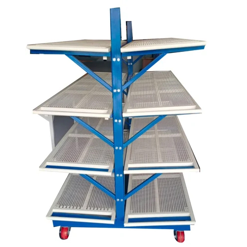 व्हाइट एंड ब्लू क्लॉथ स्टोरेज रैक