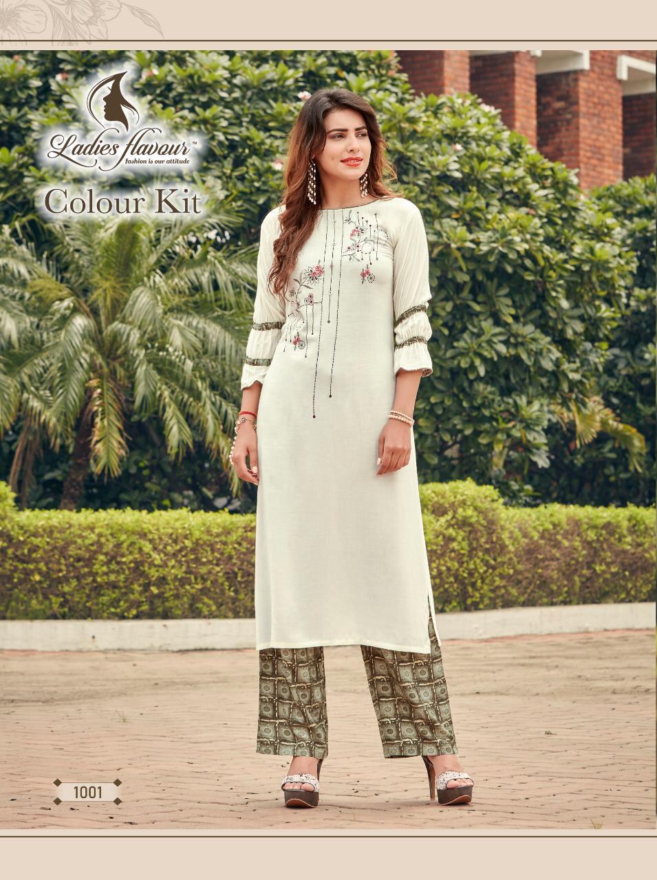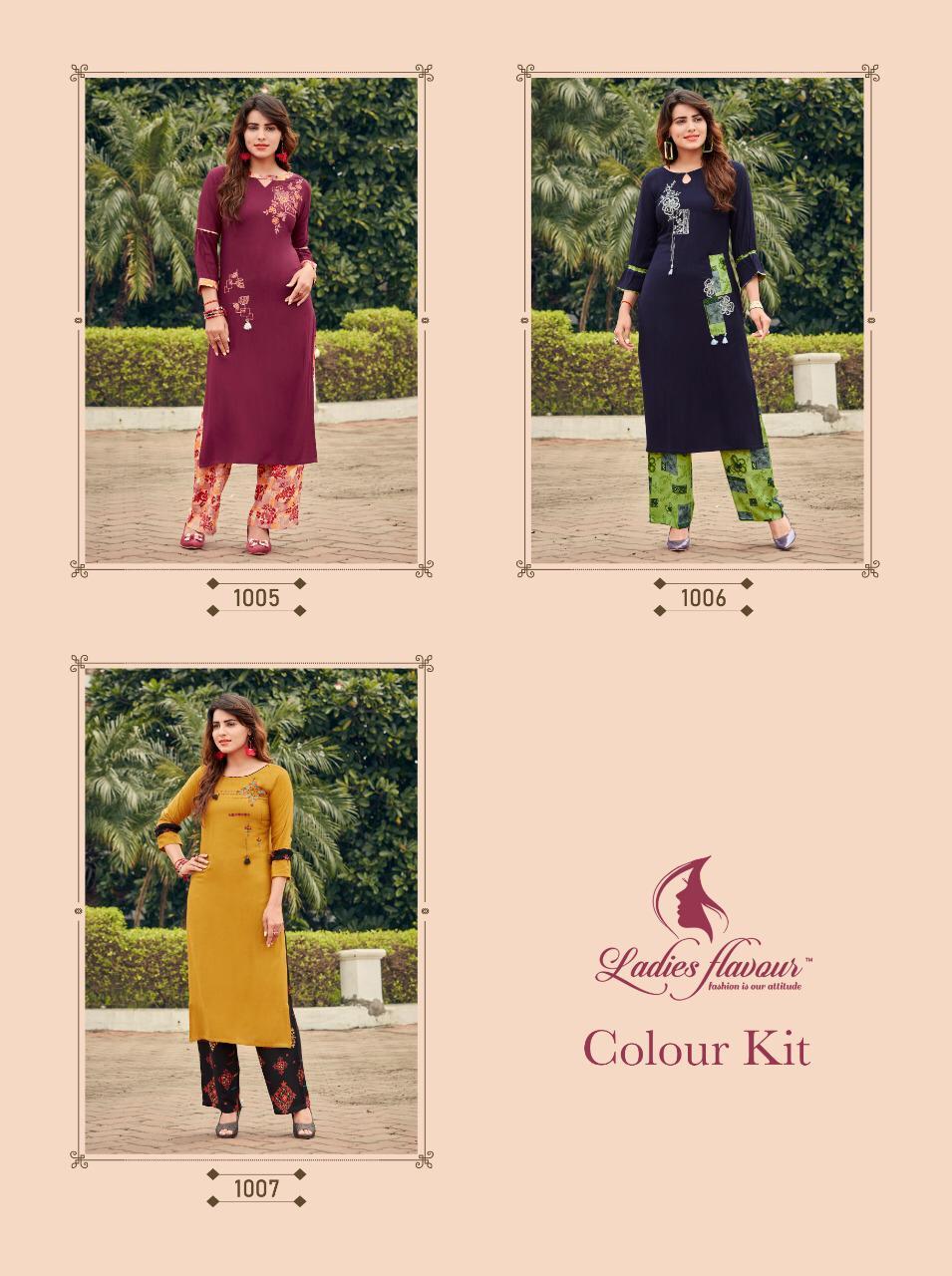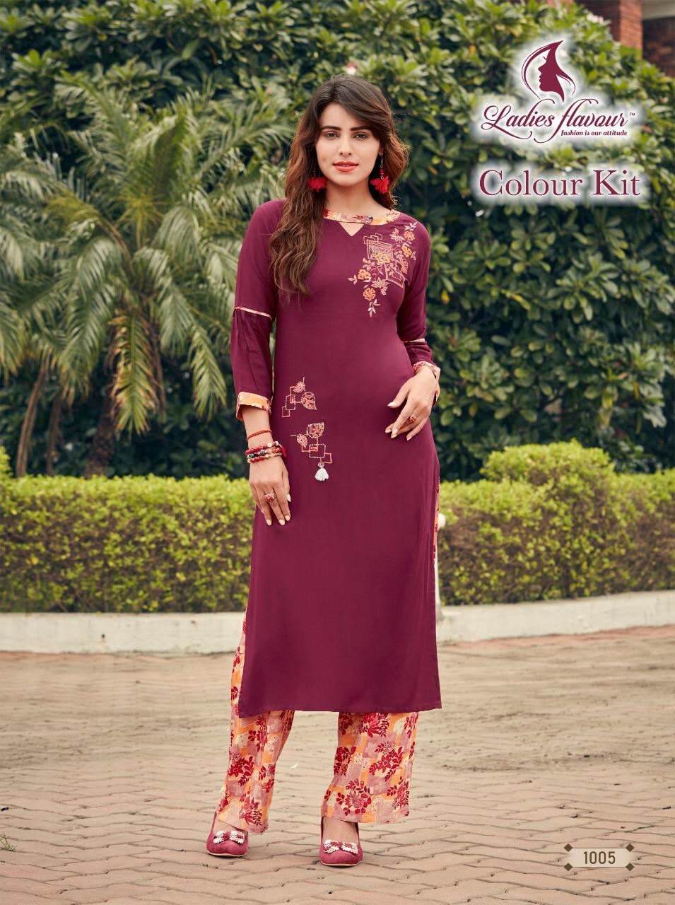 Explore in english - Colour Kit Rayon 14 kg With Embroidery Work Kurti
