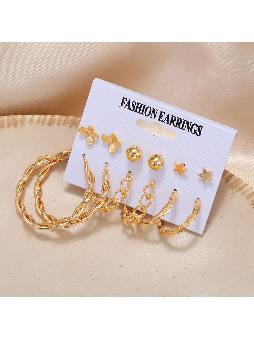 स्टाइलिश 6 गोल्डन पॉलिन स्टार बटरफ्लाई हूप इयररिंग का कॉम्बो जेंडर: महिलाएं