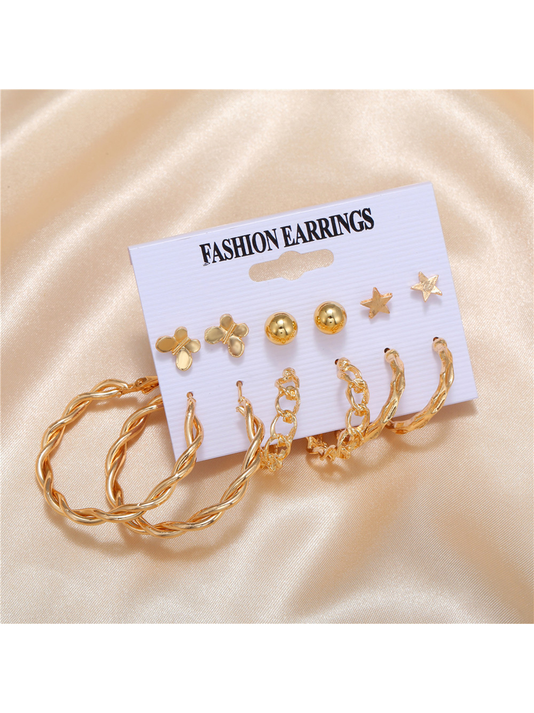 Explore in english - Combo Of 6 Golden Palin Star Butterfly Hoop Earrings