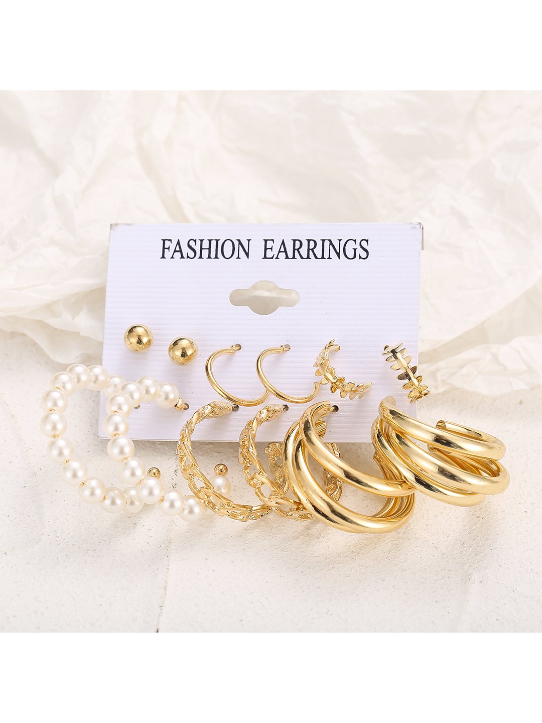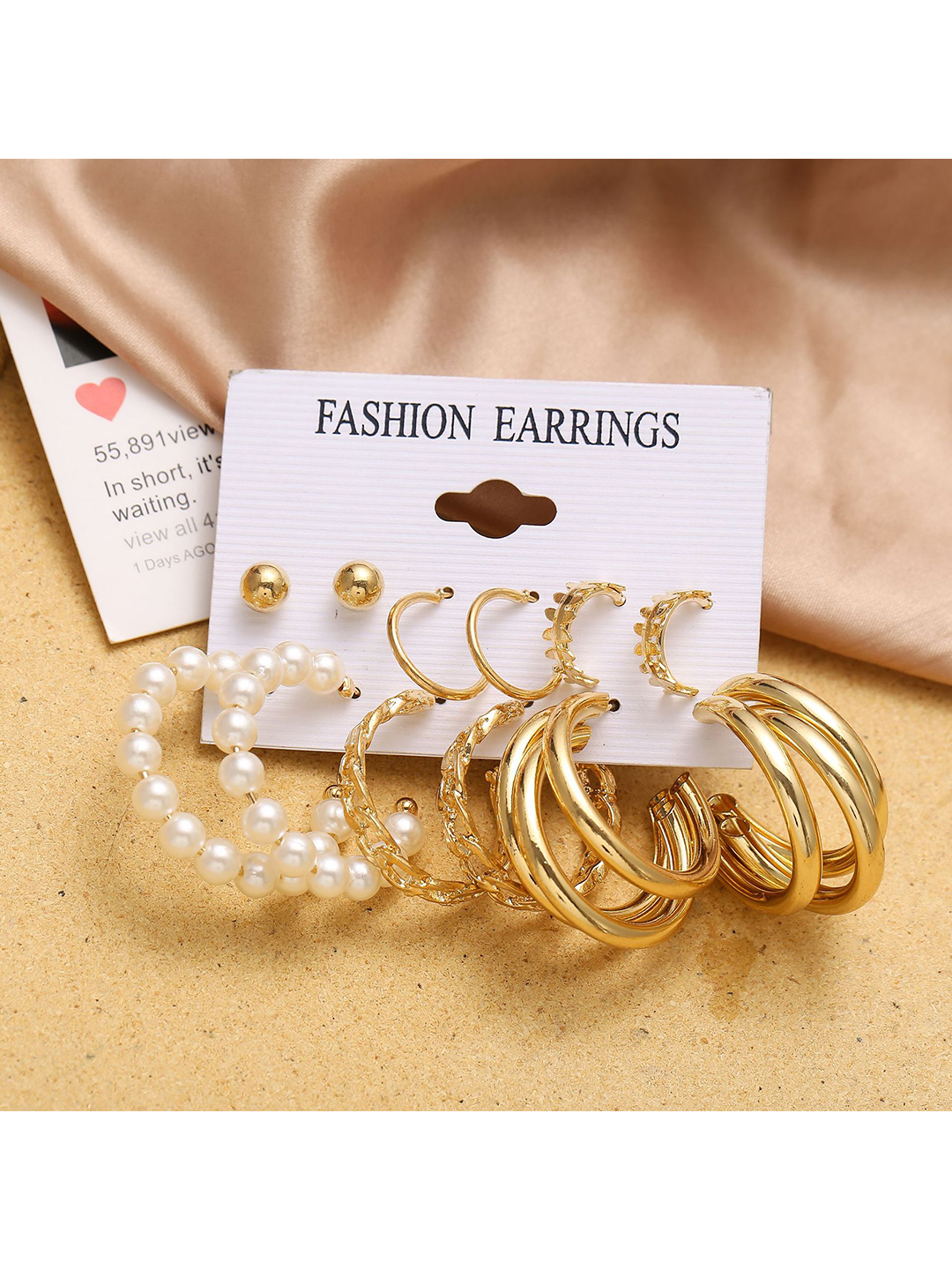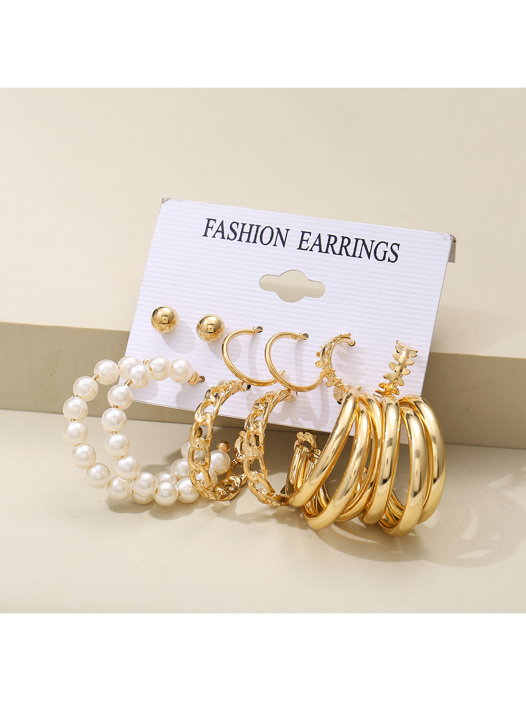 Explore in english - Combo Of 6 Golden Plain Chain and Pearl Big Hoop Earrings