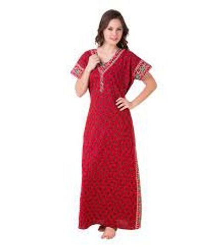 प्रिंटेड कम्फर्टेबल-टू-वियर कॉटन व्हाइट लेडीज़ नाइट गाउन