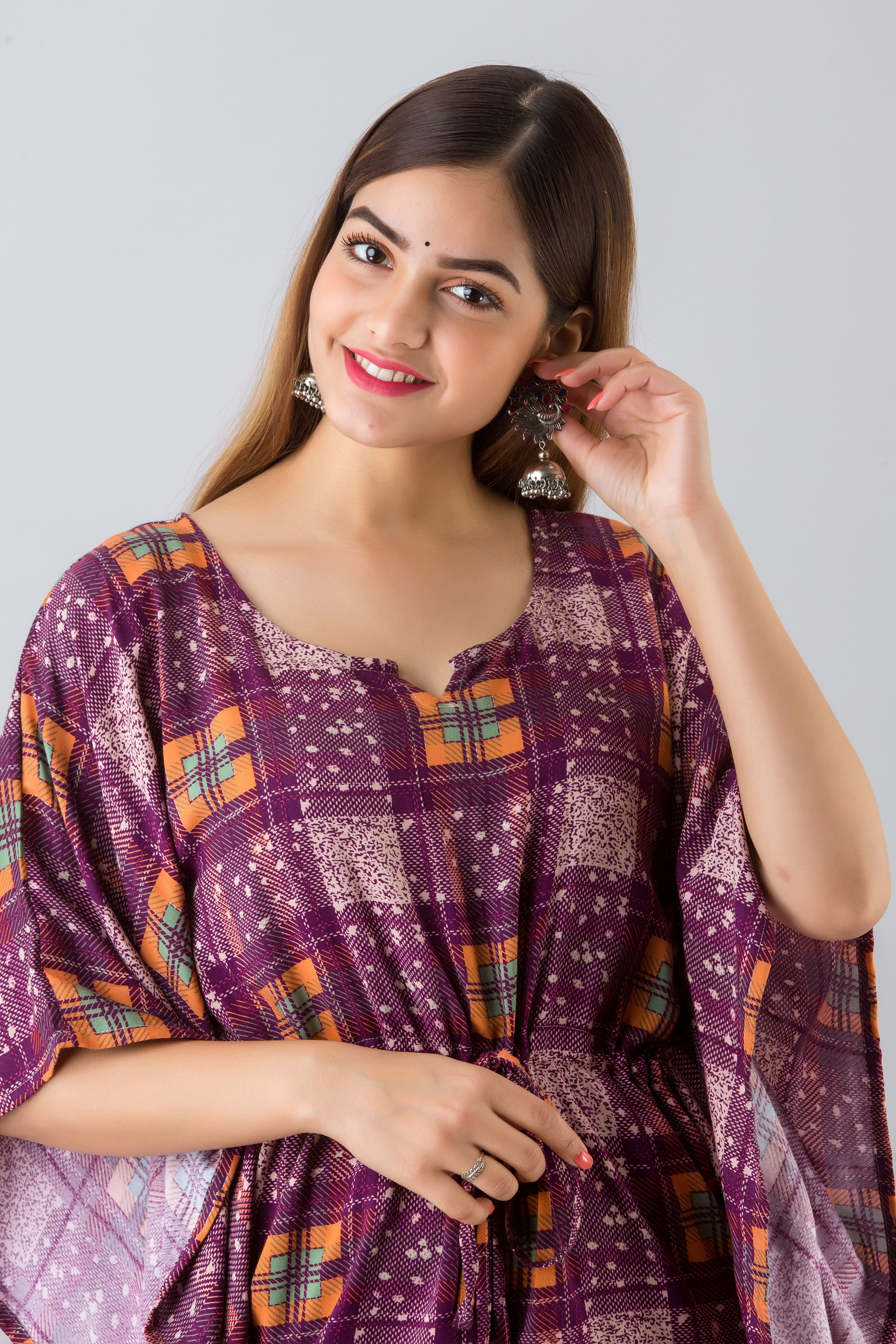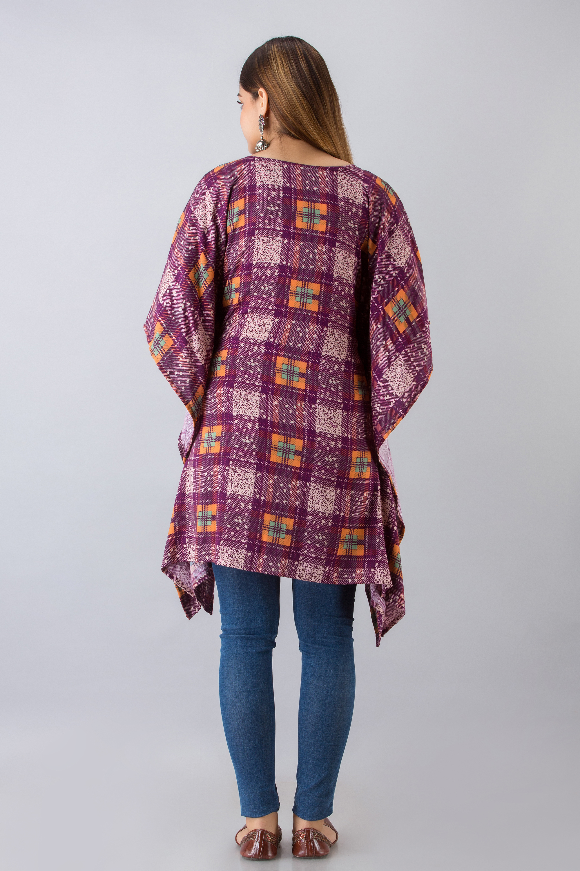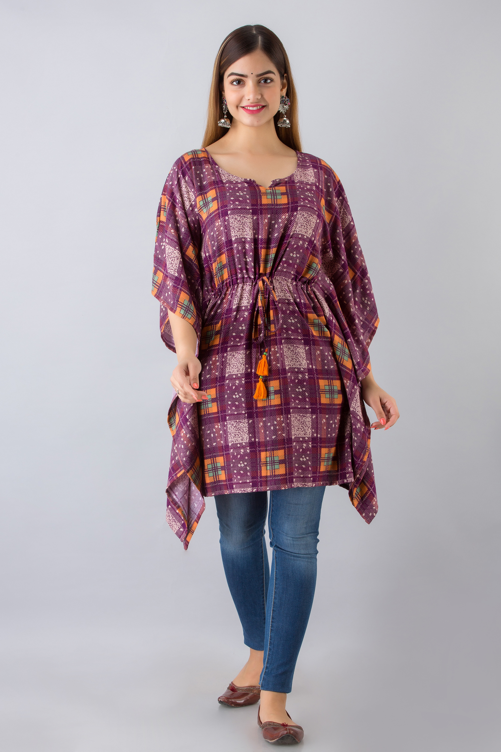 इंडियन पर्पल कॉटन प्रिंटेड काफ्तान