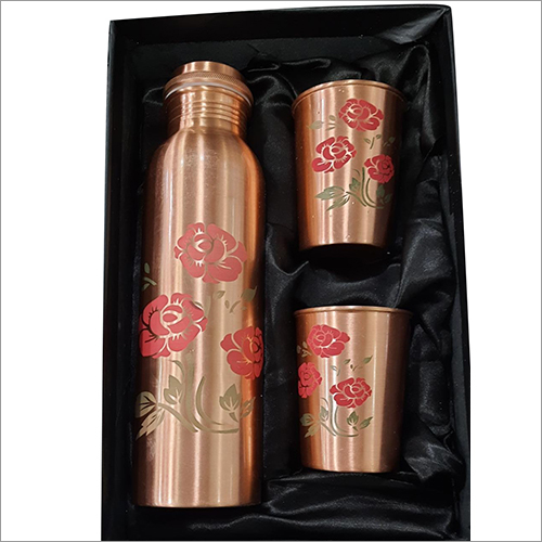 दो ग्लास सेट के साथ व्हाइट प्रिंटिंग कॉपर बॉटल्स