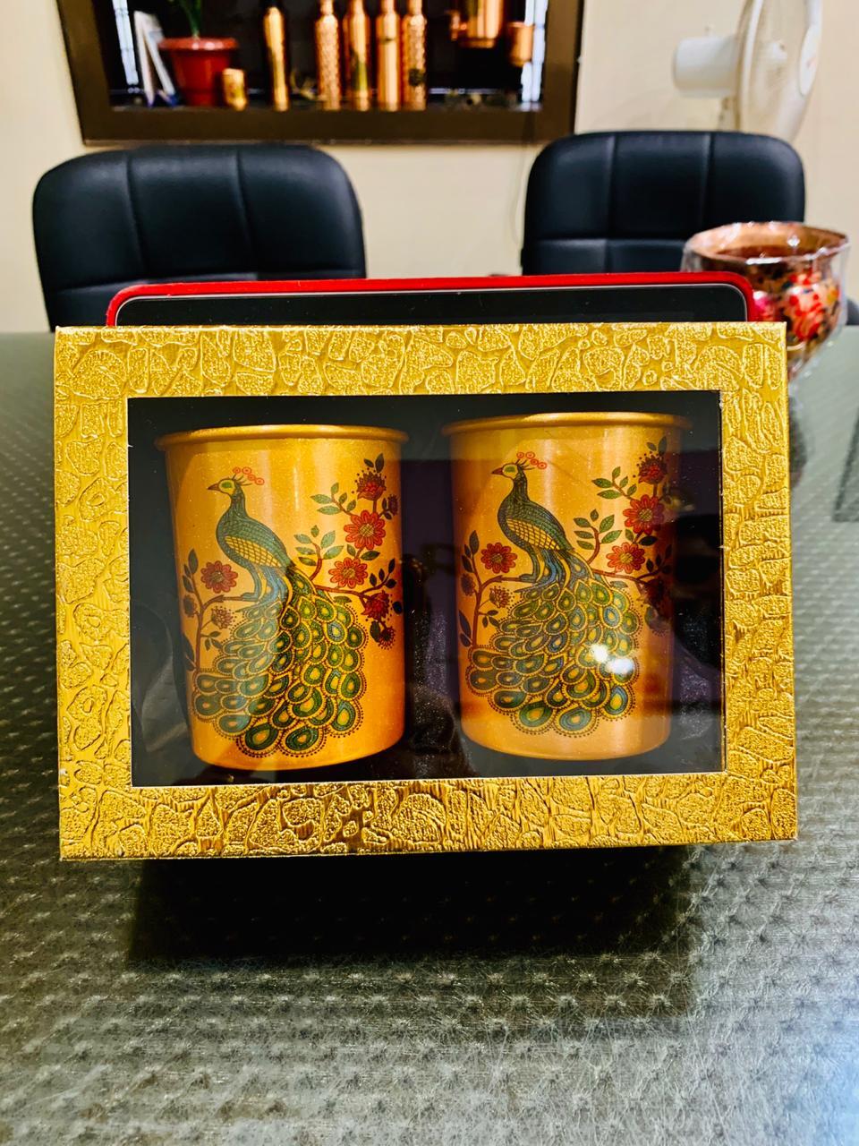 मेटल कॉपर प्रिंटेड ग्लास 2 का सेट