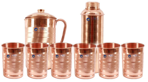कॉपर सिल्वर टच 1 पीचर, 6 ग्लास कप, 1 पानी की बोतल