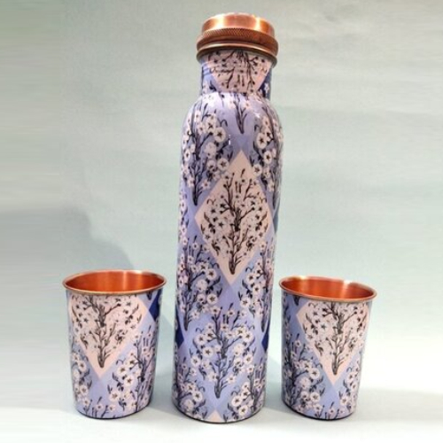 मेटल कॉपर वॉटर बॉटल और ग्लास सेट