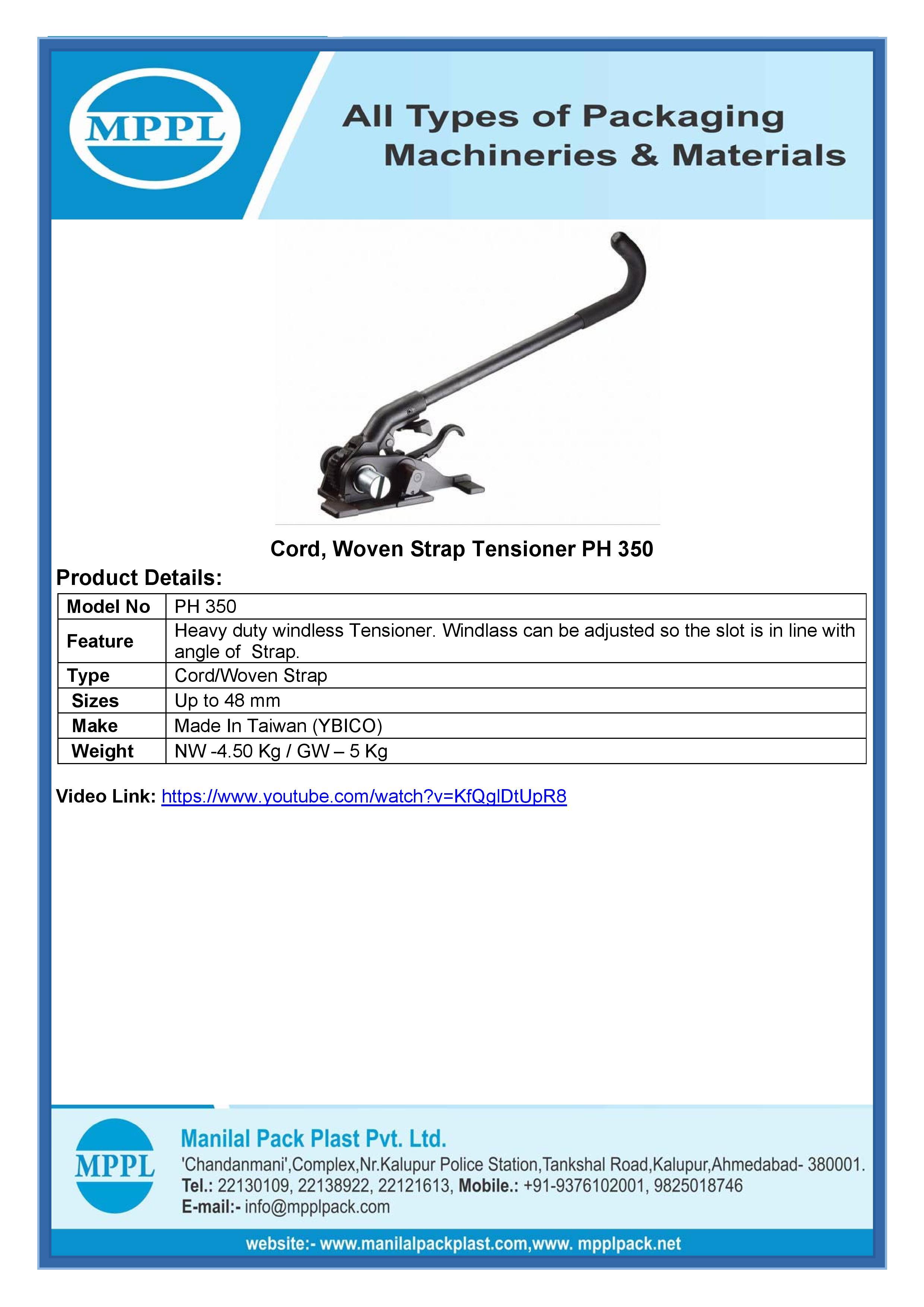 कॉर्ड बुना हुआ पट्टा टेंशनर Ph 350 आवेदन: बॉक्स