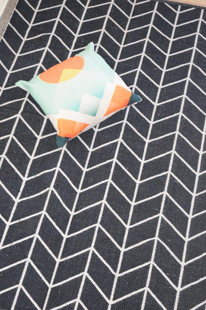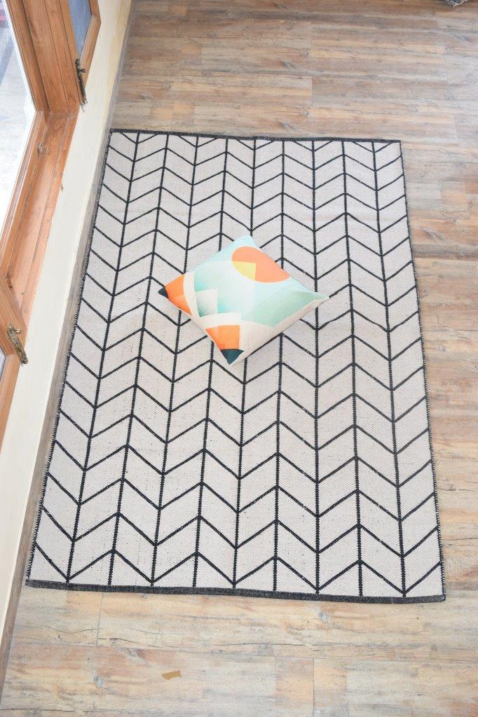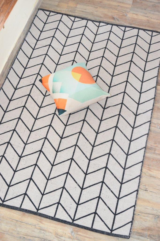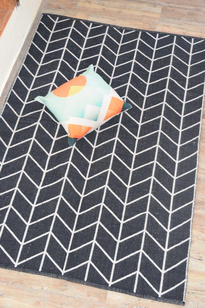 ब्लैक/व्हाइट कॉटन चेनिल फ्लोर रग
