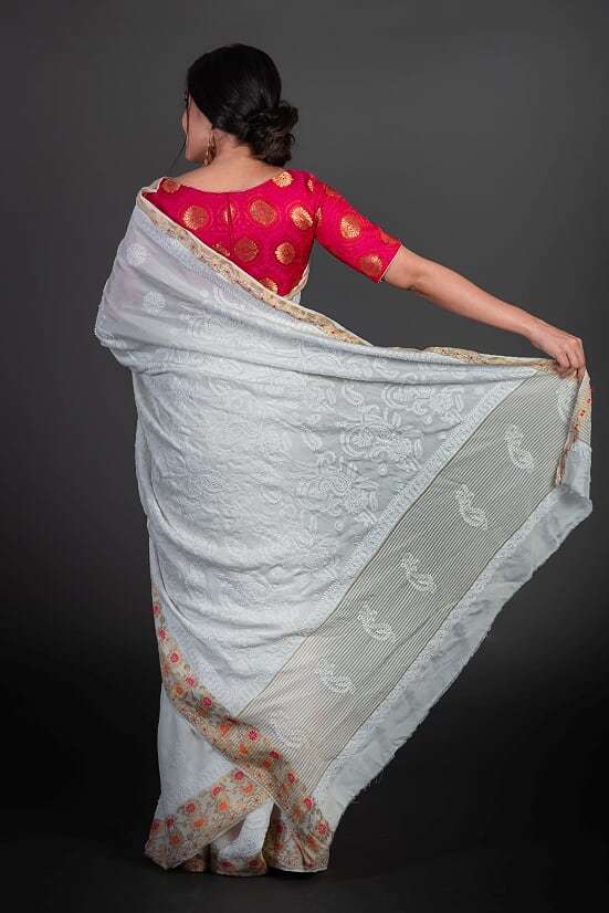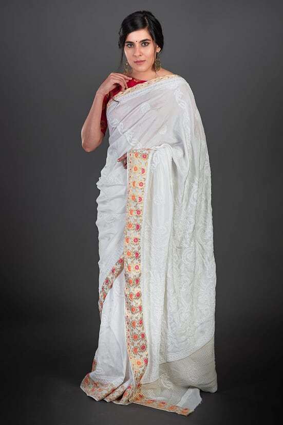 धोने योग्य लखनऊवी नवीनतम शिफॉन मिरर वर्क कुर्ती
