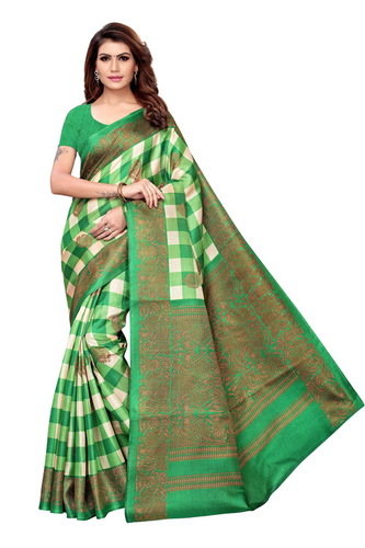 ग्रीन-येलो डिजिटल सीक्वेंस लेडीज़ डिज़ाइनर साड़ी