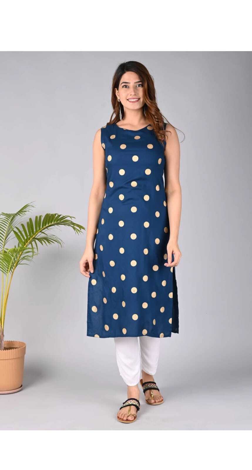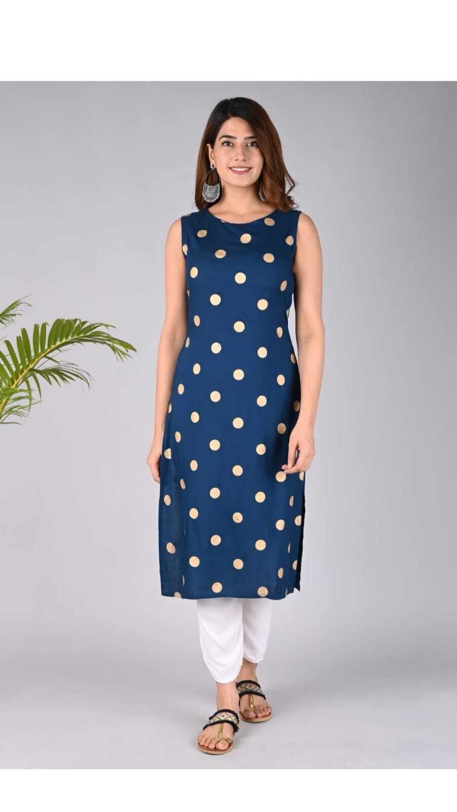 ब्लू स्ट्रेट कॉटन प्रिंटेड जयपुरी कुर्ती