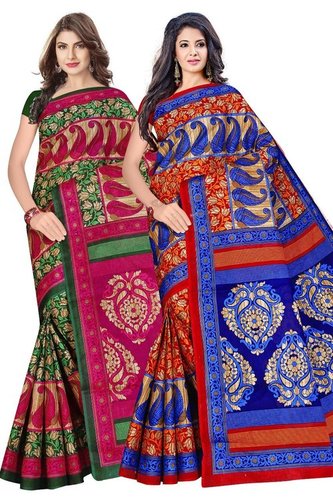मल्टीकलर 5.5 मीटर कैज़ुअल और समर वियर लेस क्लोज़र प्रिंटेड कॉटन सिल्क टेंट साड़ी