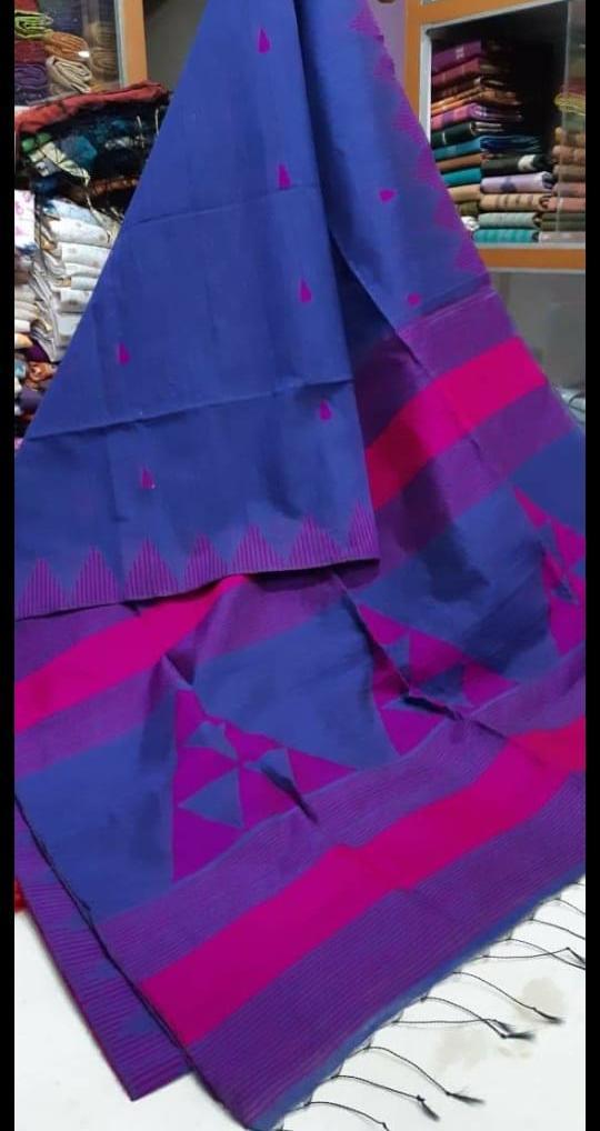 नवी ब्लू। कॉटन सिल्क ट्रायंगल डिज़ाइन हैंडलूम साड़ी