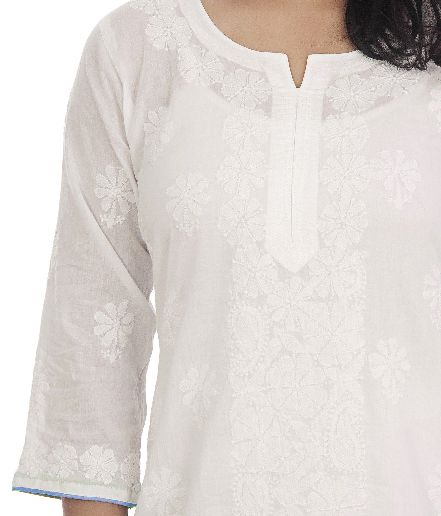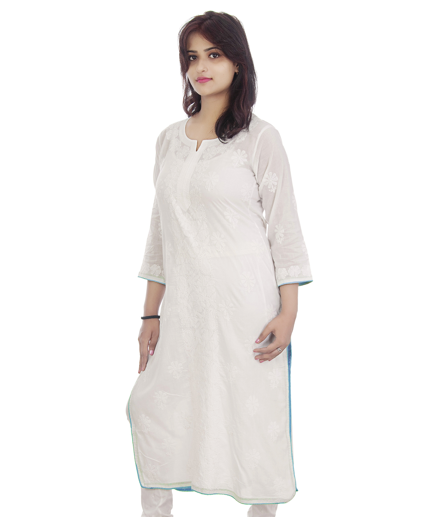 Explore in english - Cotton Straight Lucknowi Chikan Kurti