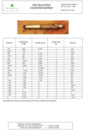 काउंटर बोर्स - र. स. टूल्स एंड ेंगिनीर्स पवत. ल्टड.
