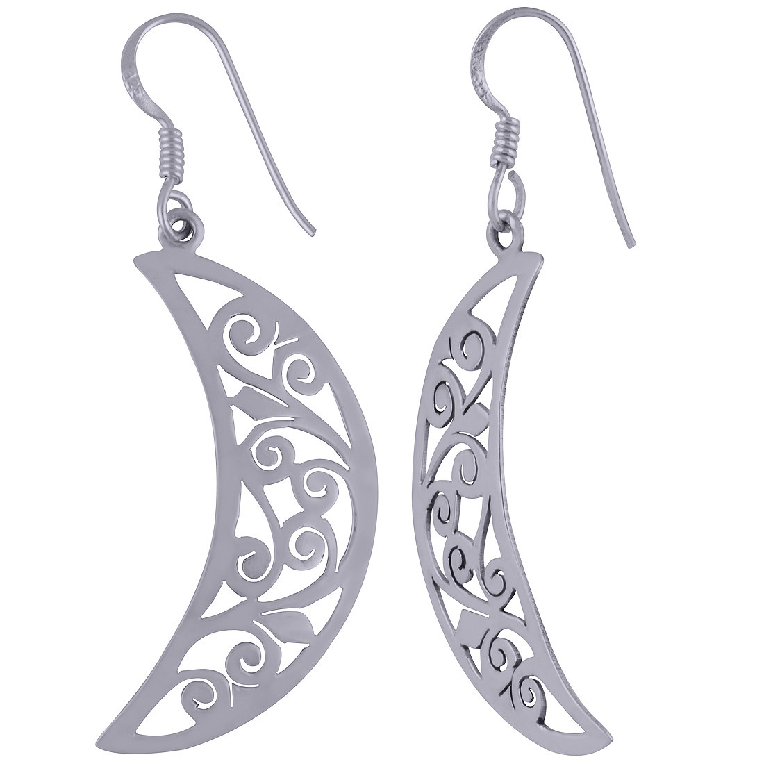 Explore in english - CRESCENT MOON JALI WORK FRAME PLAIN 925 STERLING SOLID SILVER EARRINGS