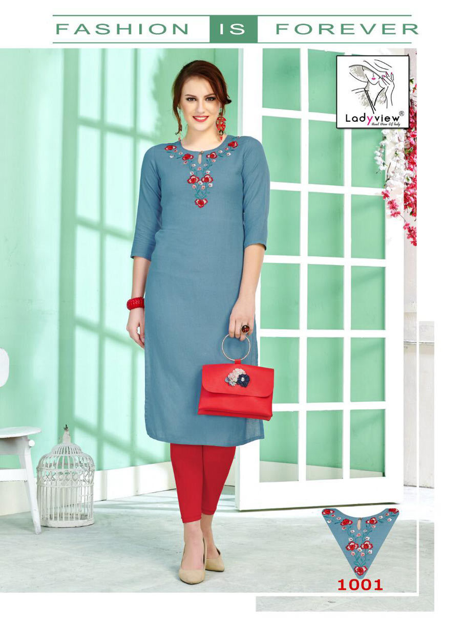 Explore in english - Crystal Ladyview Cotton Embroidery Kurtis Set