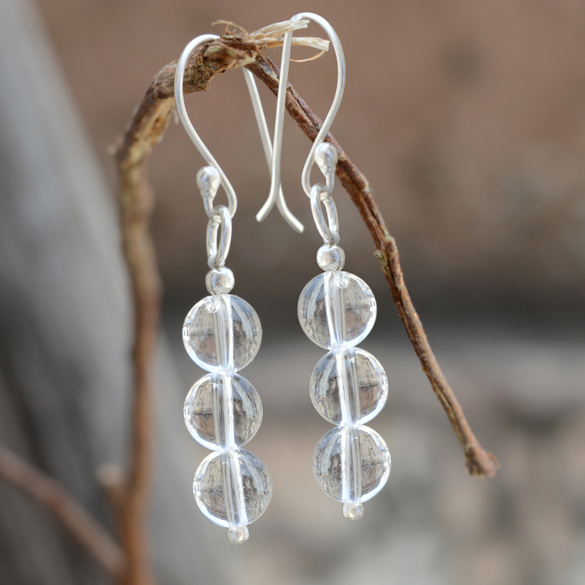 Explore in english - Crystal Quartz Gemstone Silver Earring PG-156394