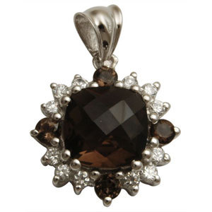 क्यूबिक जिरकोनिया पेंडेंट 925 स्टर्लिंग सिल्वर में कुशन शेप में सेंटर स्टोन के रूप में स्मोकी के साथ