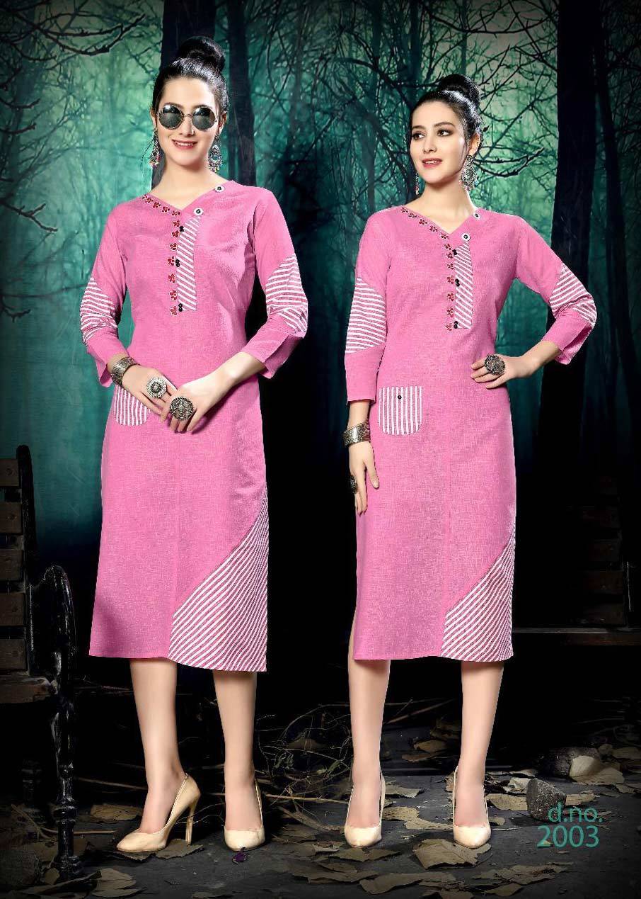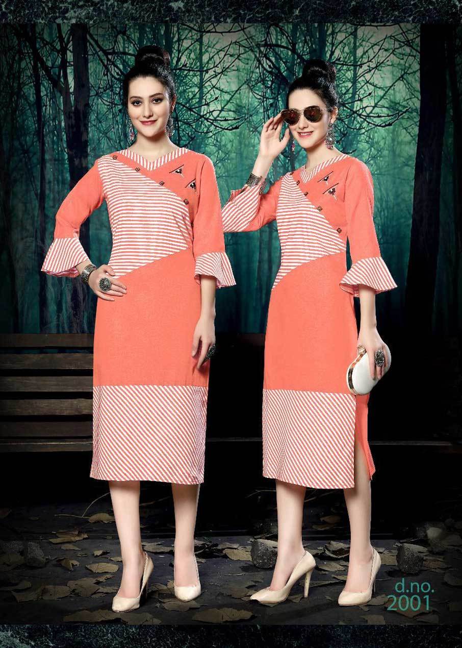 स्प्रिंग कल्चर Vol-2 रिया डिज़ाइनर स्ट्राइप कॉटन कुर्ती