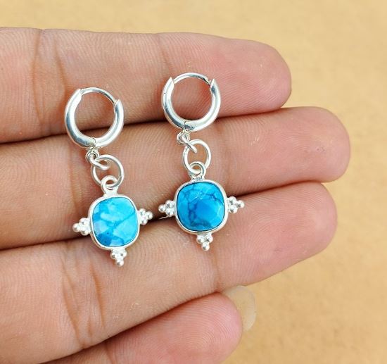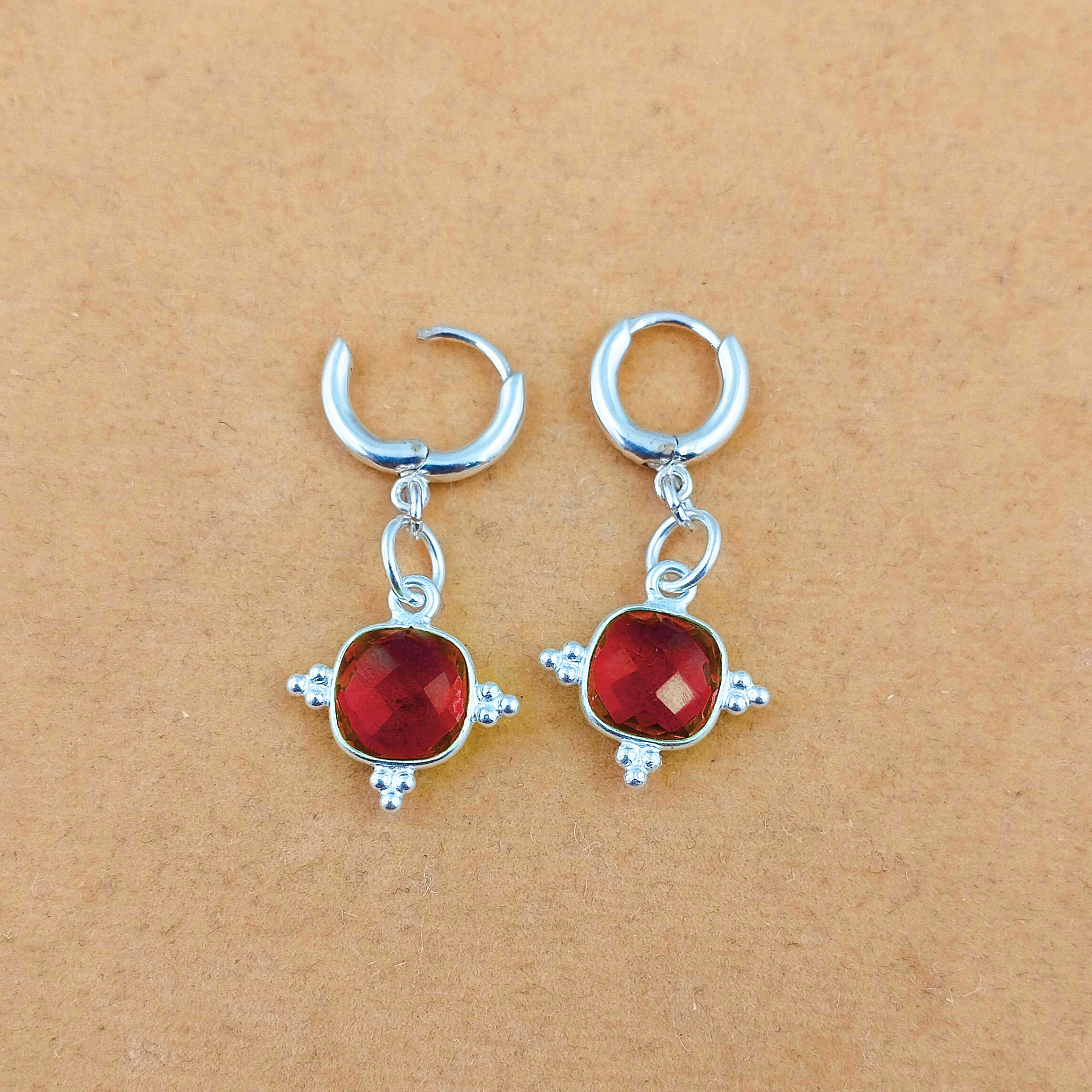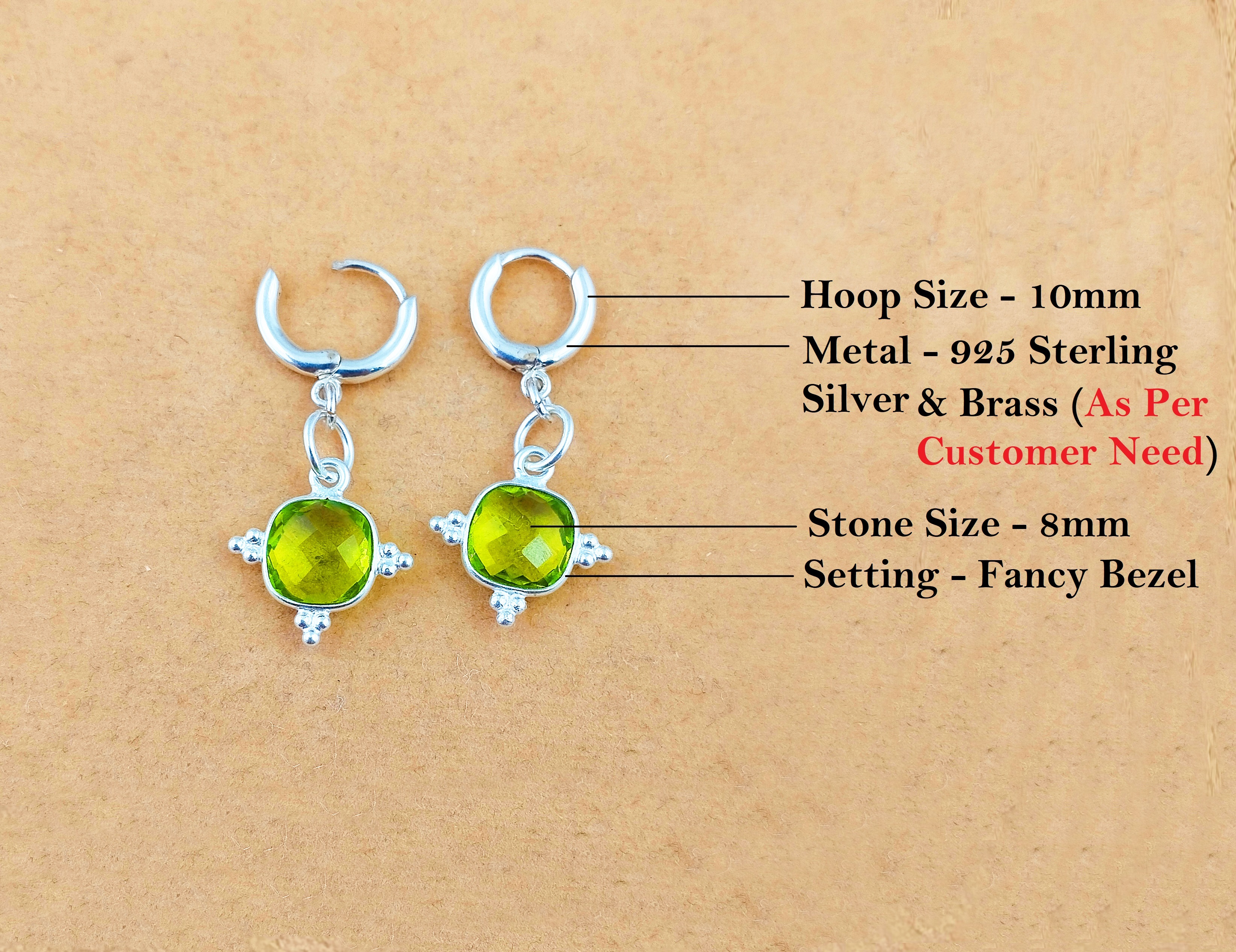 Explore in english - Cushion Shape Gemstone Stone Size 8mm 925 Sterling Silver Bezel Set Hoop Earring