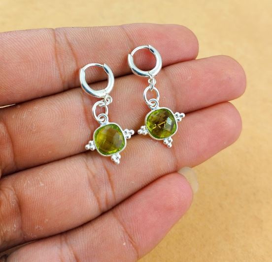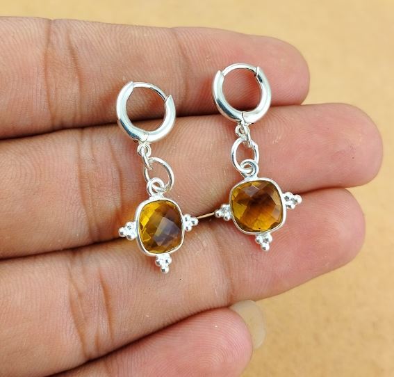 कुशन शेप जेमस्टोन स्टोन साइज 8 मिमी 925 स्टर्लिंग सिल्वर बेज़ल सेट हूप ईयररिंग