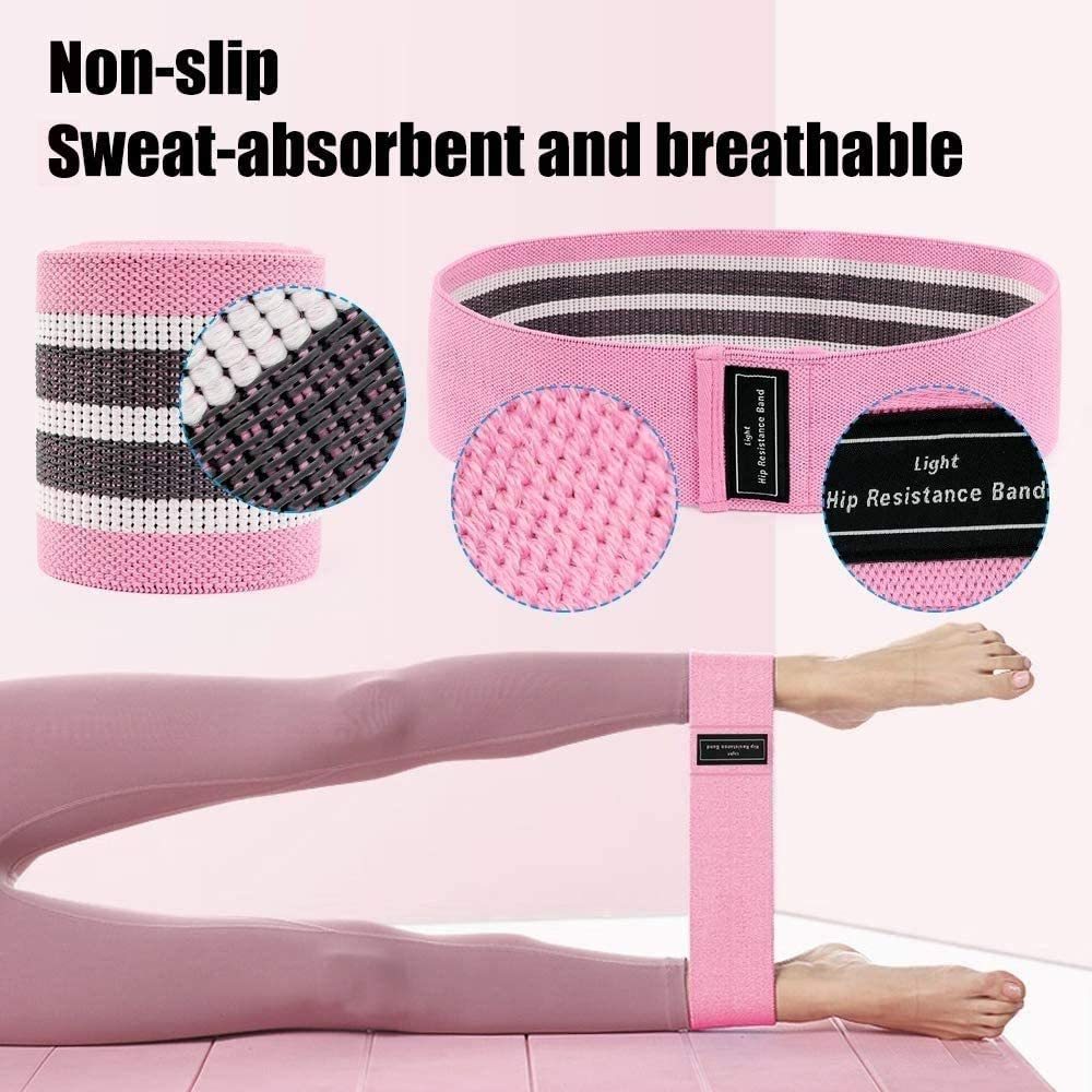 कस्टम सुपर इलास्टिक एंटी स्लिप फैब्रिक एक्सरसाइज रेसिस्टेंस बूटी बैंड 3 रेजिस्टेंस लेवल महिलाओं के लिए पिंक हिप वर्कआउट योगा बैंड एप्लीकेशन: टोन अप मसल