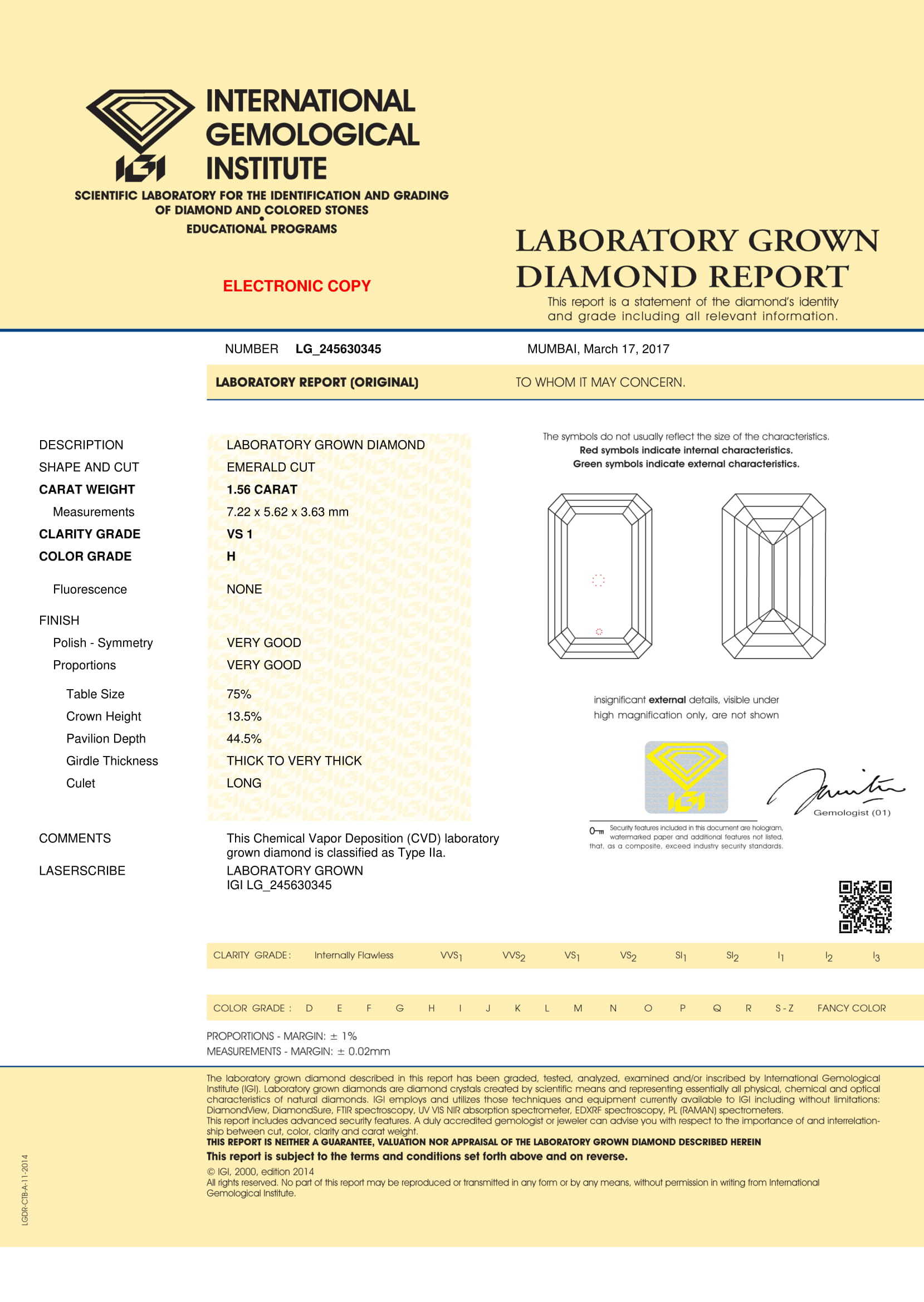 Explore in english - CVD Diamond 1.56ct H VS1 Emerald Shape IGI Certified Stone