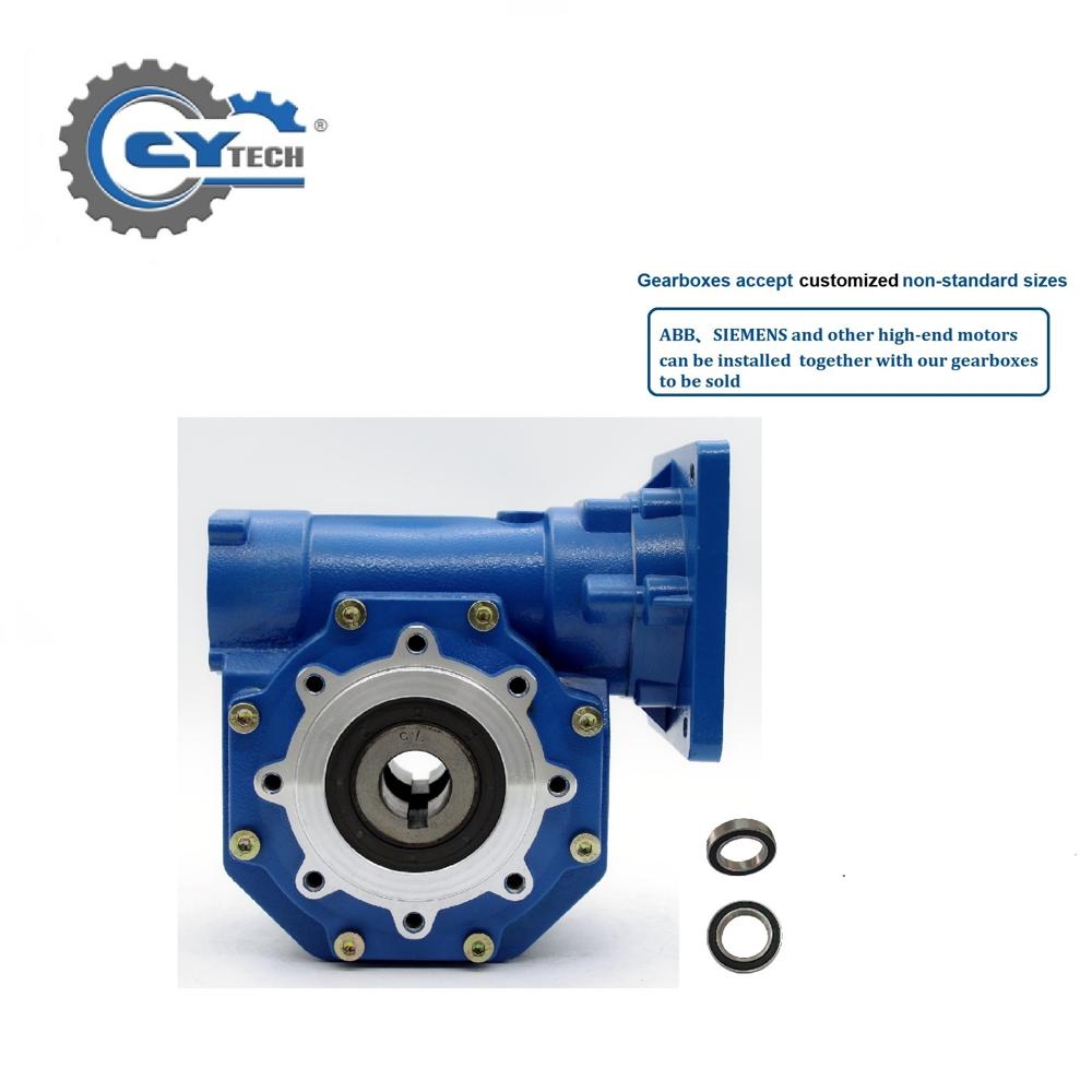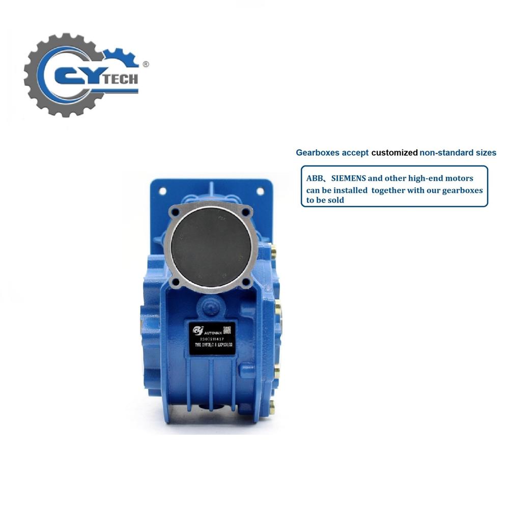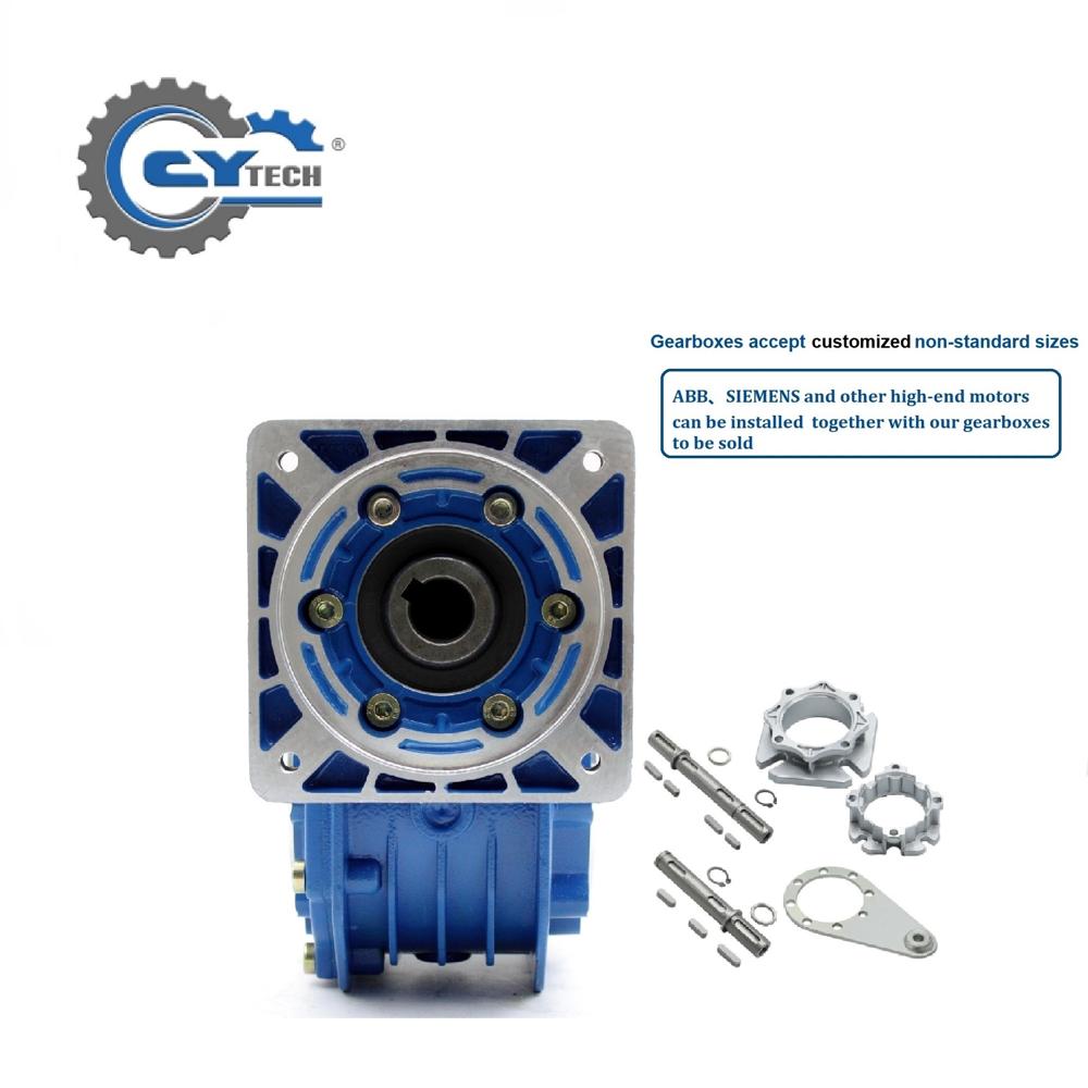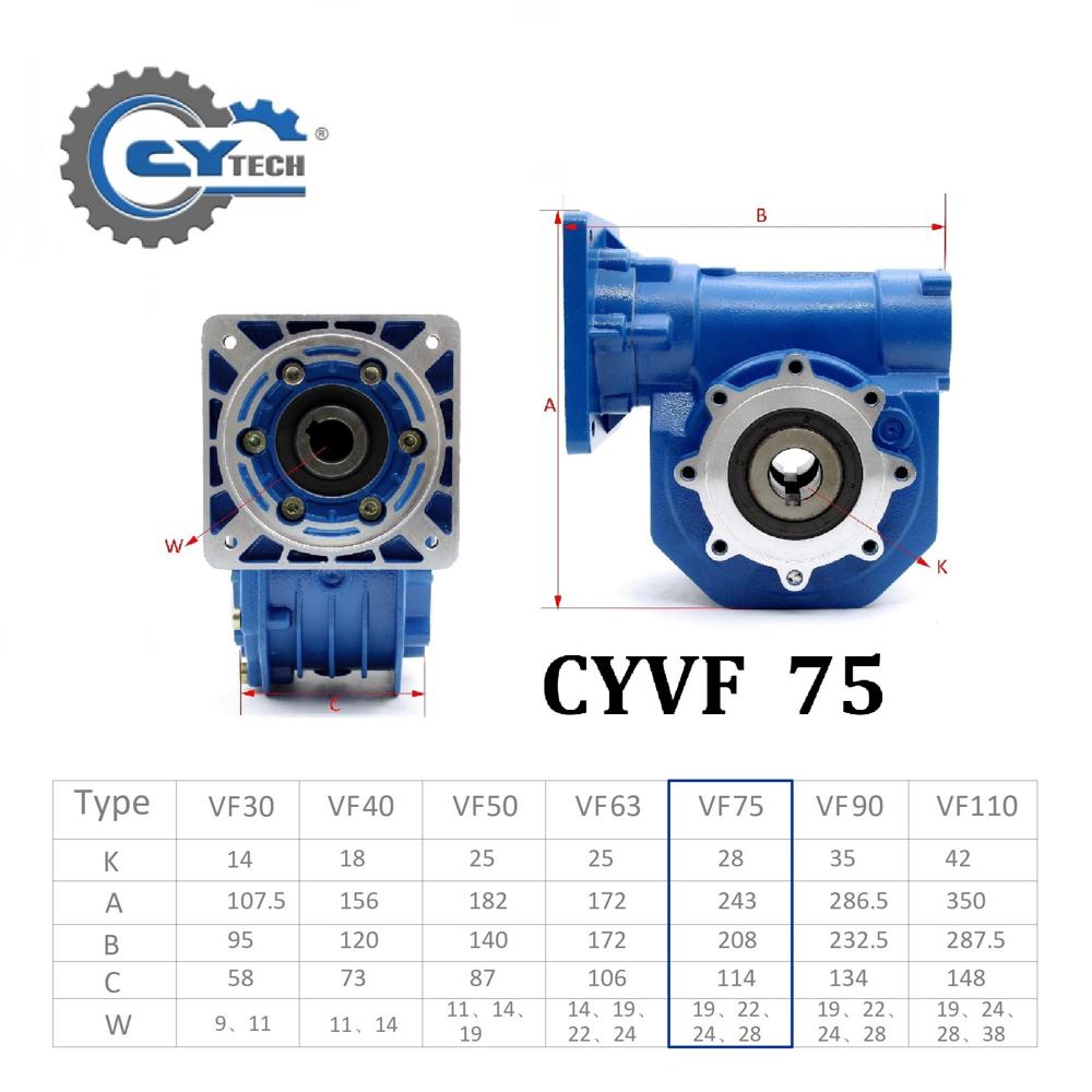 Chenyue उच्च टॉर्क वर्म गियरबॉक्स Nmvf 75 Cyvf 75 इनपुट 19/22/14/24/28 मिमी स्पीड अनुपात 5:1 से 100:1 टिन कांस्य के लिए Cnc फ्री मेंटेनेंस