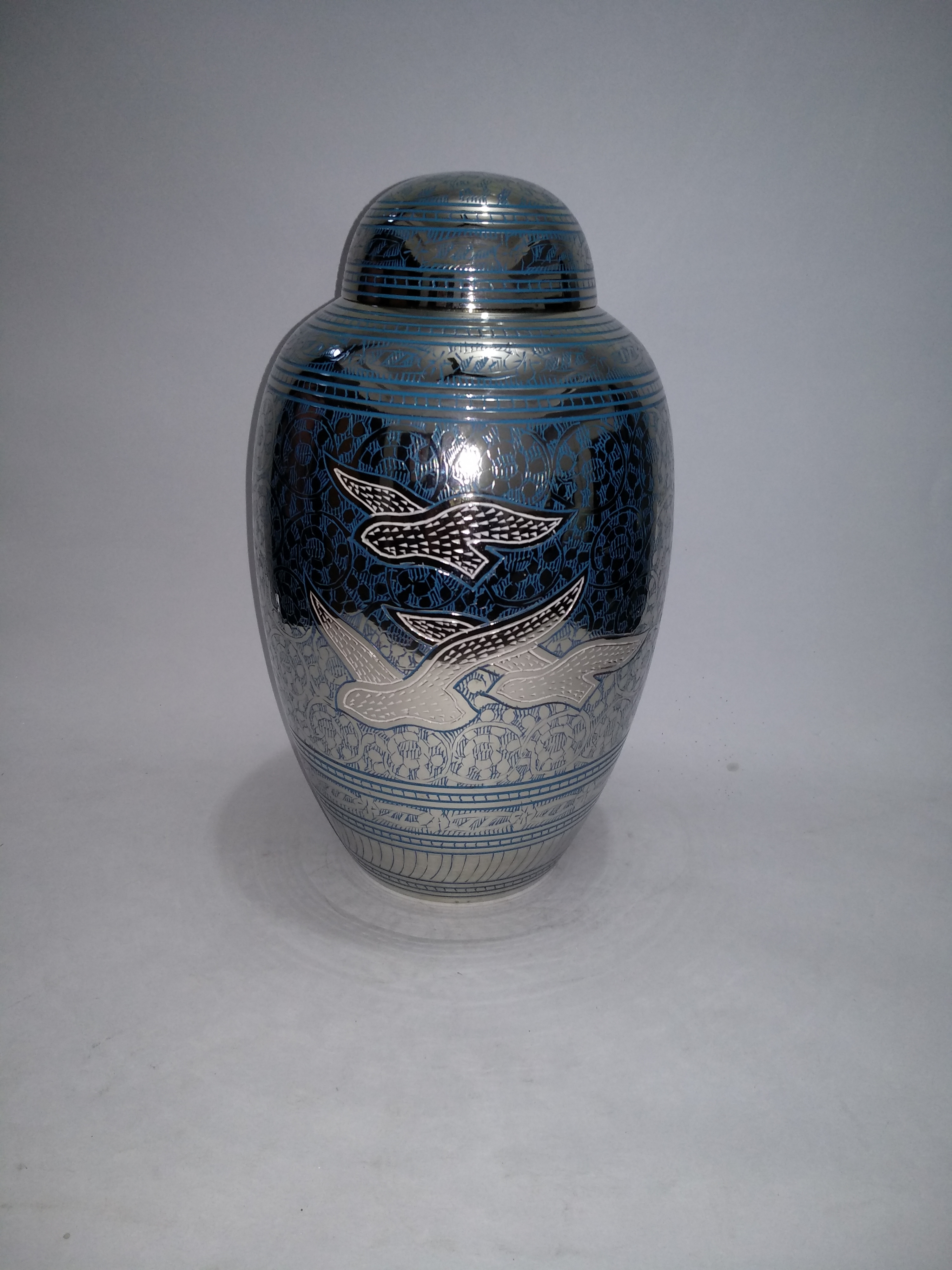 Explore in english - Dark Green Three Doves Brass Cremation Urn