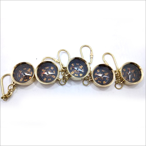 ब्राउन ब्रास एंटीक कम्पास की-चेन