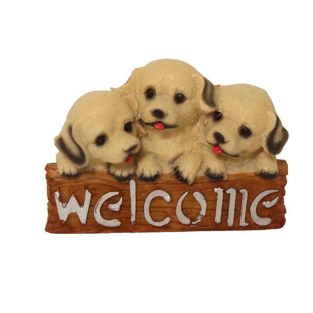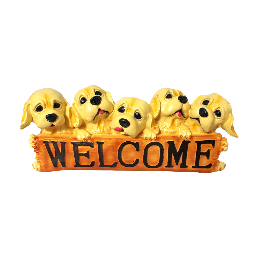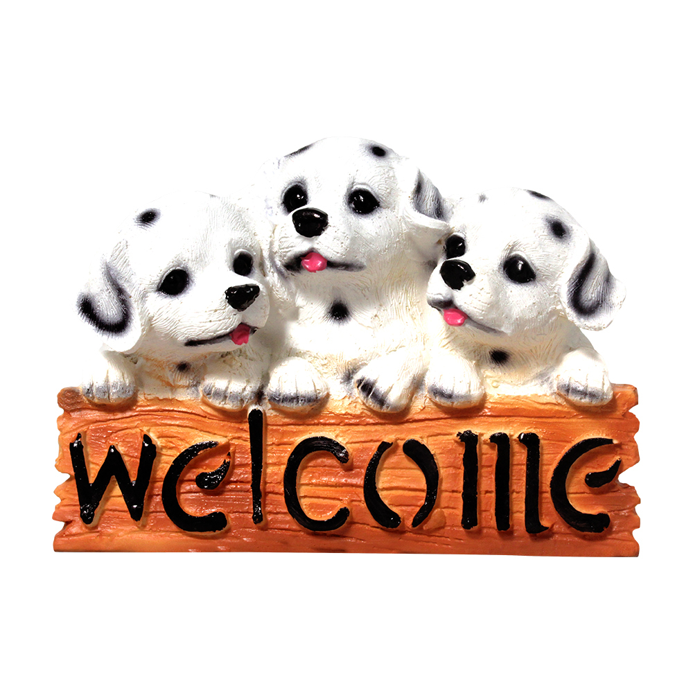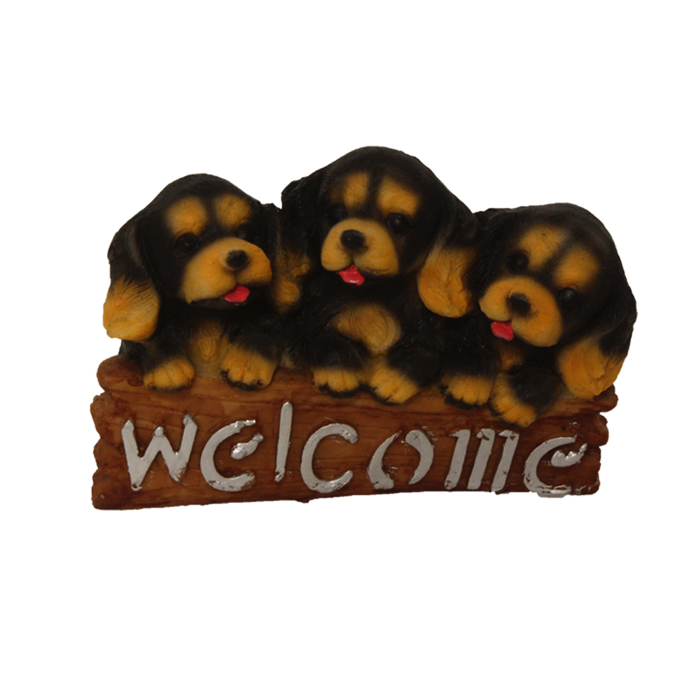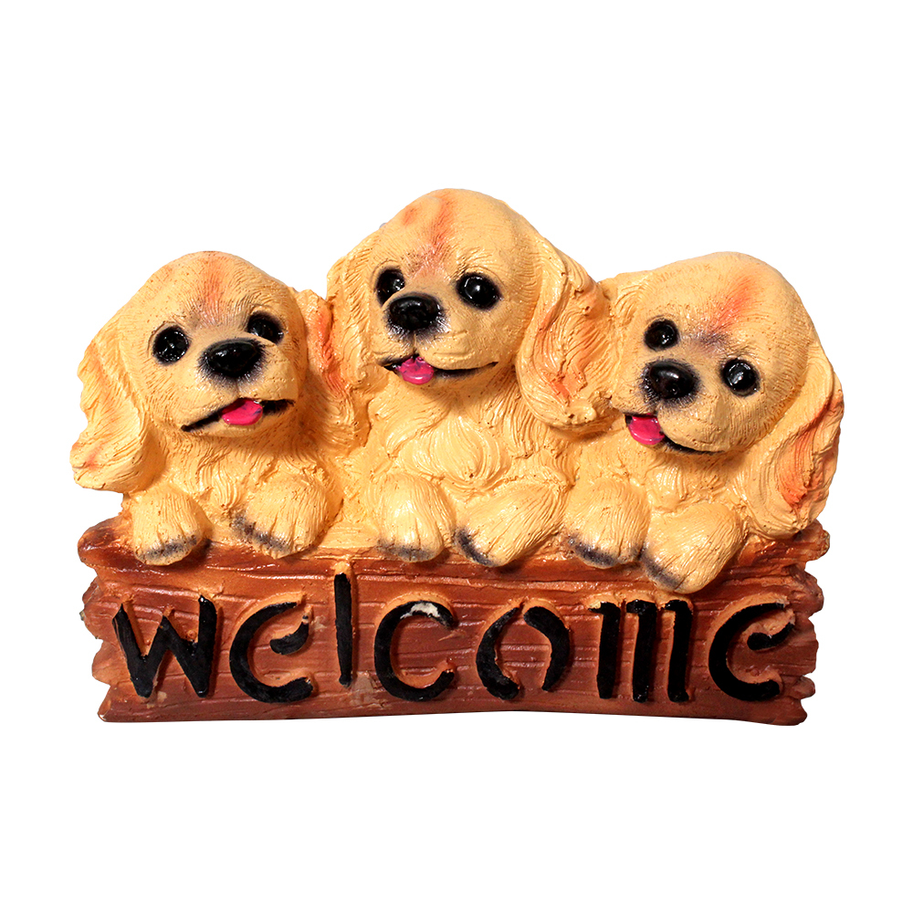 मल्टीकलर पॉलीरेसिन वेलकम प्लेट डॉग स्टैच्यू