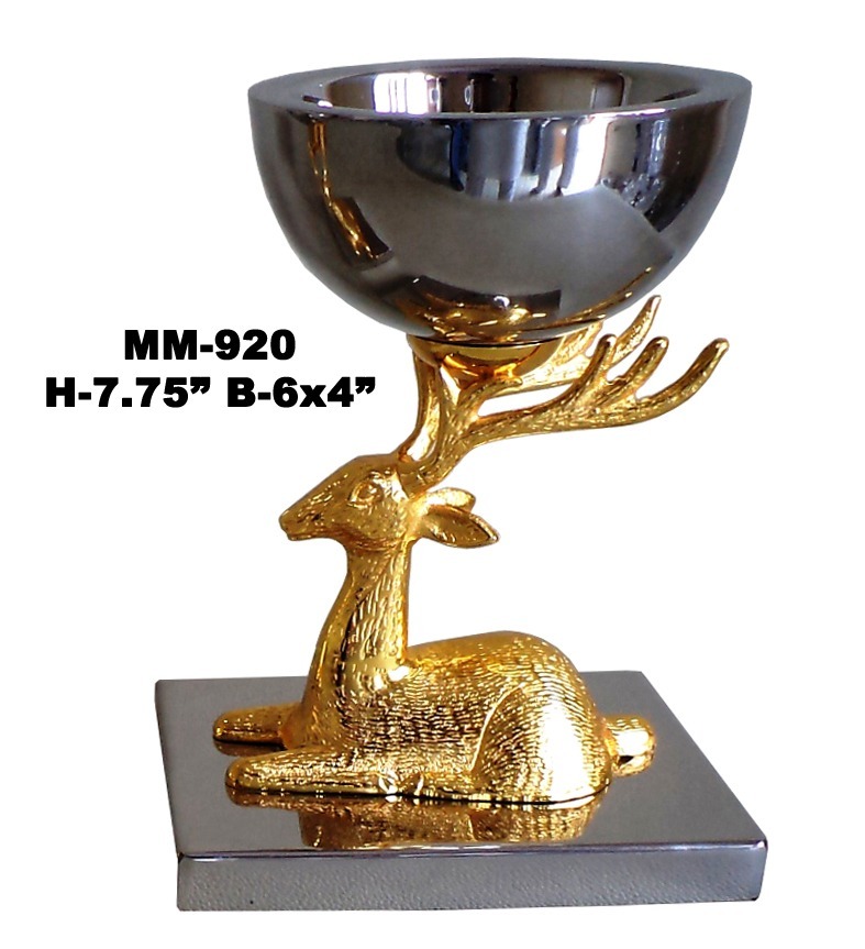 लकड़ी के आधार के साथ पीतल में सोने के हिरण की जोड़ी