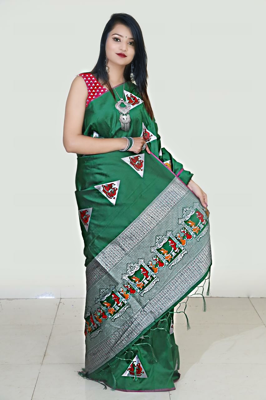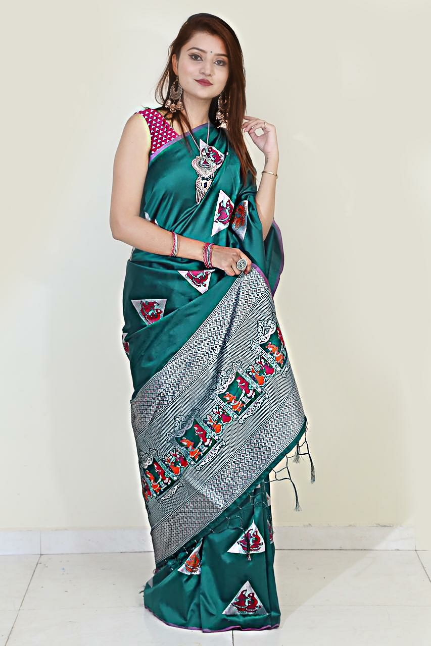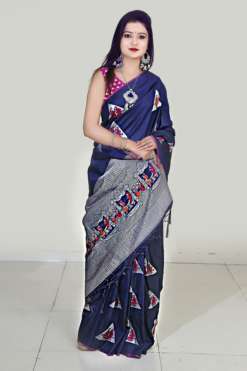 एथनिक पहनावे के लिए रैपियर सिल्क मीना जरी वर्क साड़ी