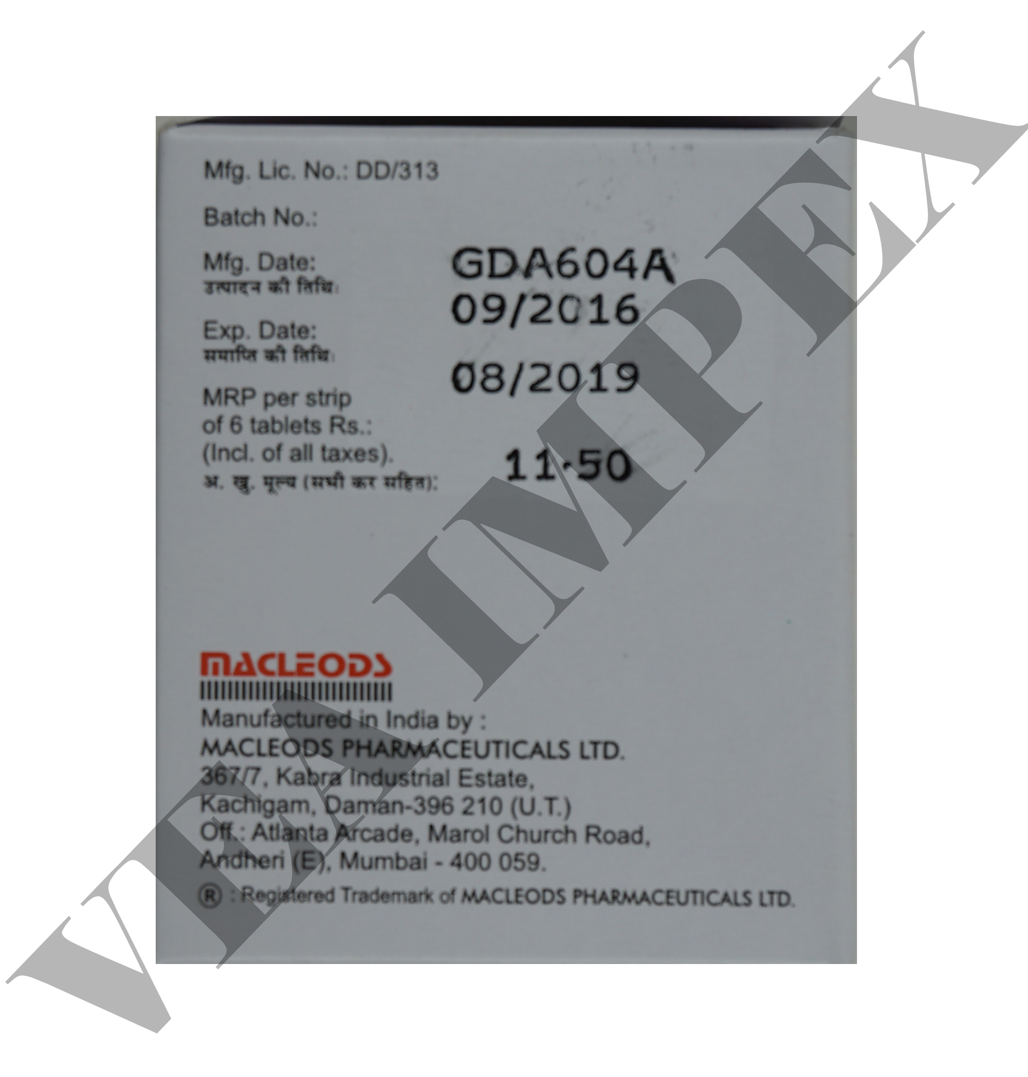 | पैकेजिंग (मात्रा प्रति बॉक्स) | 10X6 Tablets |