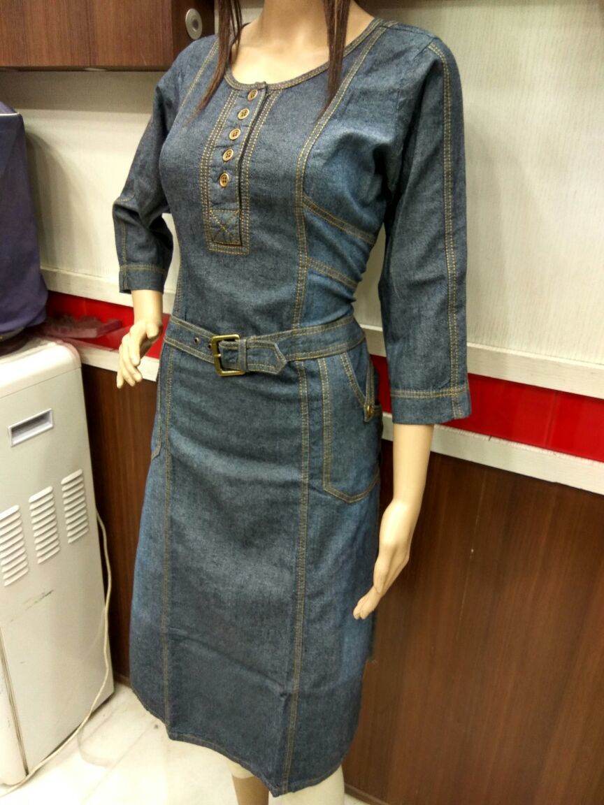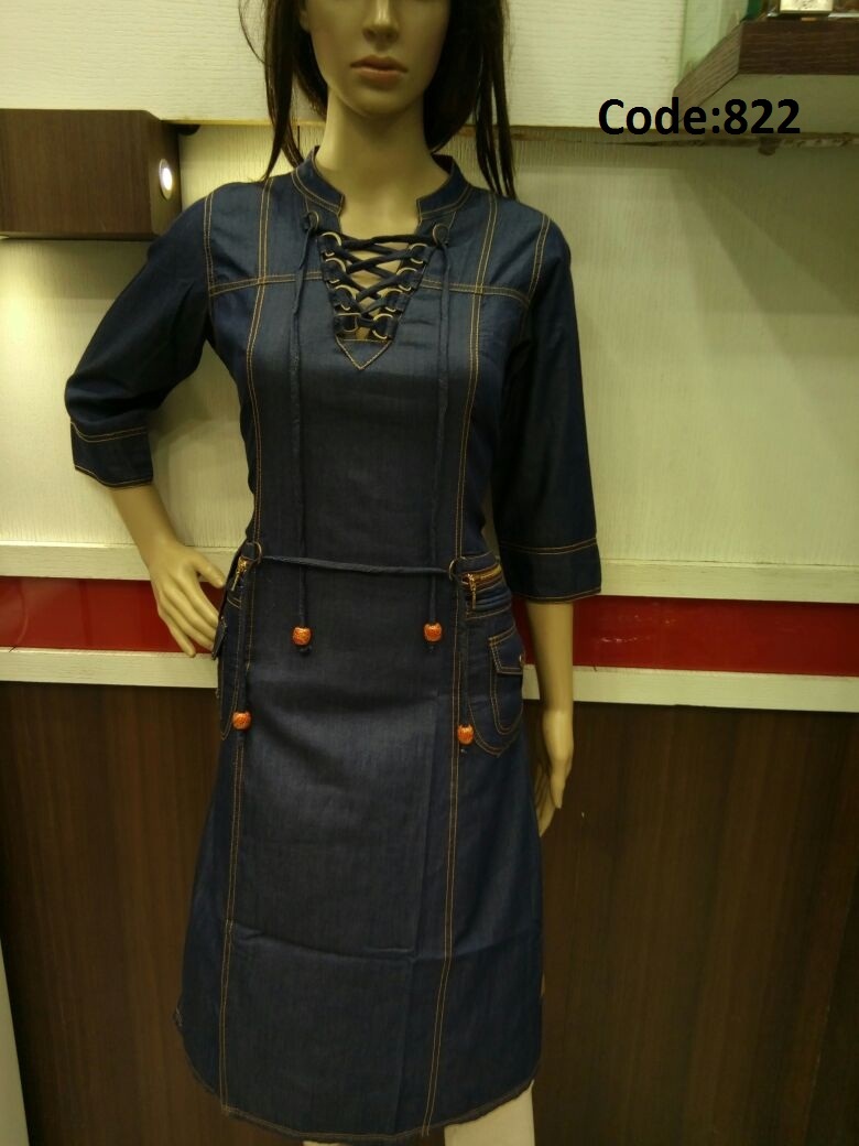 धोने योग्य डेनिम बेल्ट कुर्तियां