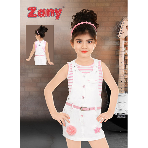 मल्टीकलर बच्चों के फैंसी डेनिम वियर प्रिंटेड अलग-अलग रंग की ड्रेस, दैनिक और पार्टी में पहनने के लिए आरामदायक