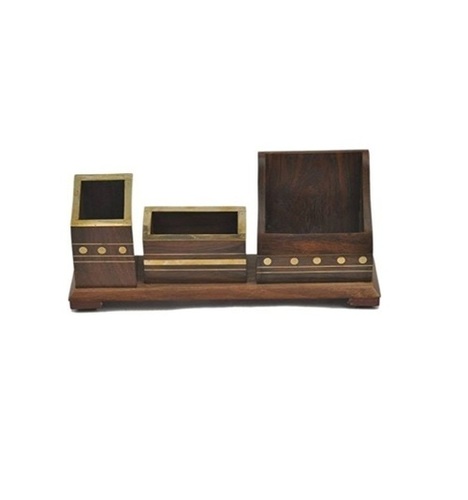 - देसी कारीगर लकड़ी का मल्टीयूज़ टेबल सजावटी पेन पेंसिल मोबाइल होल्डर स्टैंड
